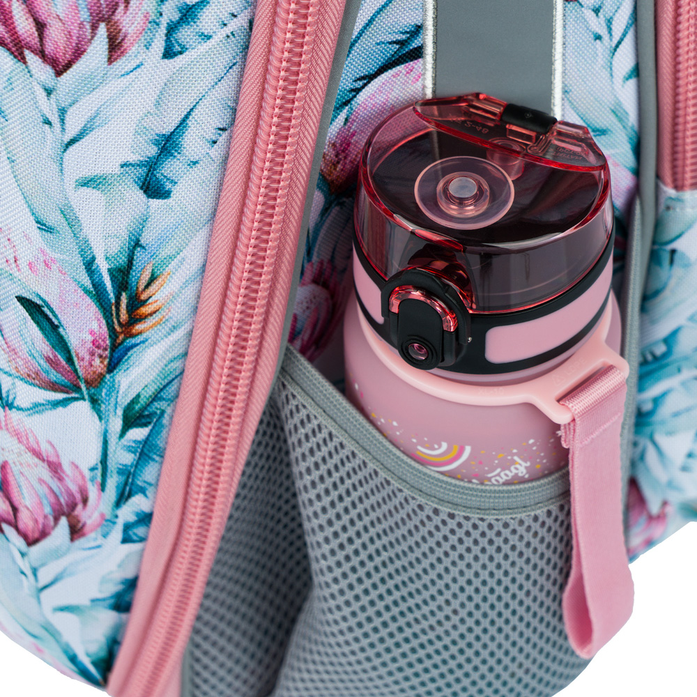• Boční kapsy z elastického materiálu, které jsou vhodné pro jednu z našich láhví na pití.