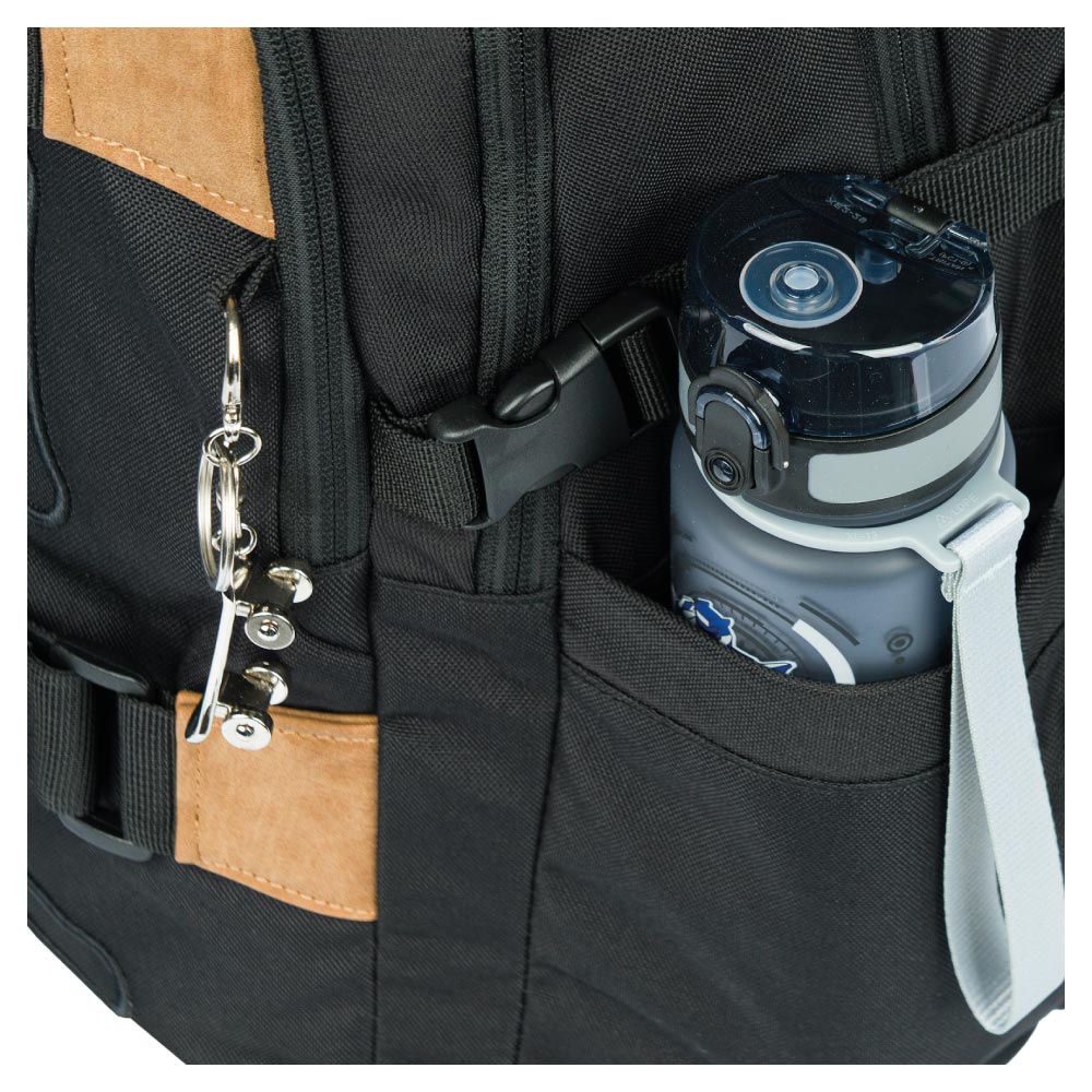 • Boční kapsy z elastického materiálu, které jsou vhodné pro jednu z našich láhví na pití.
