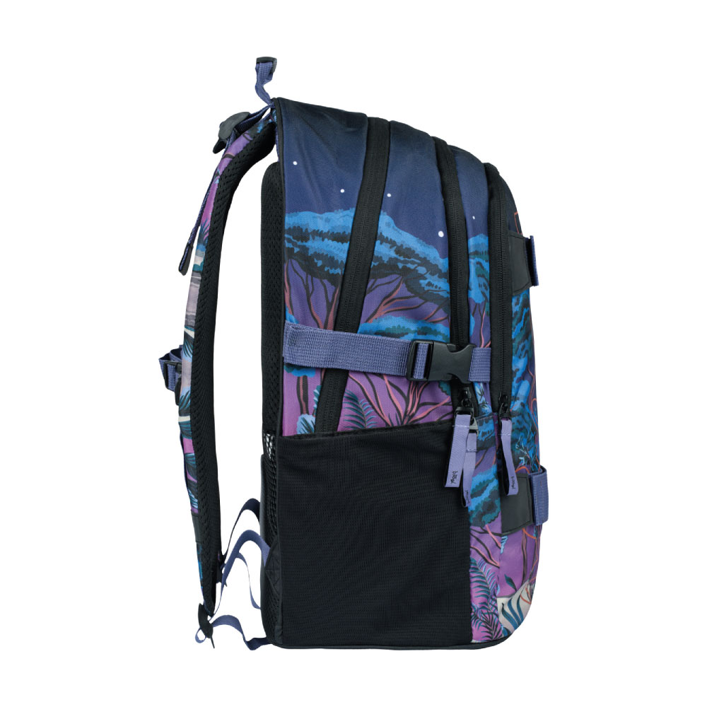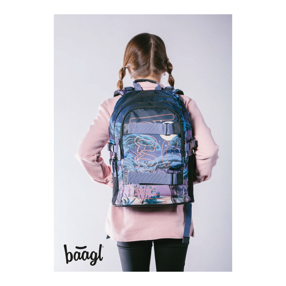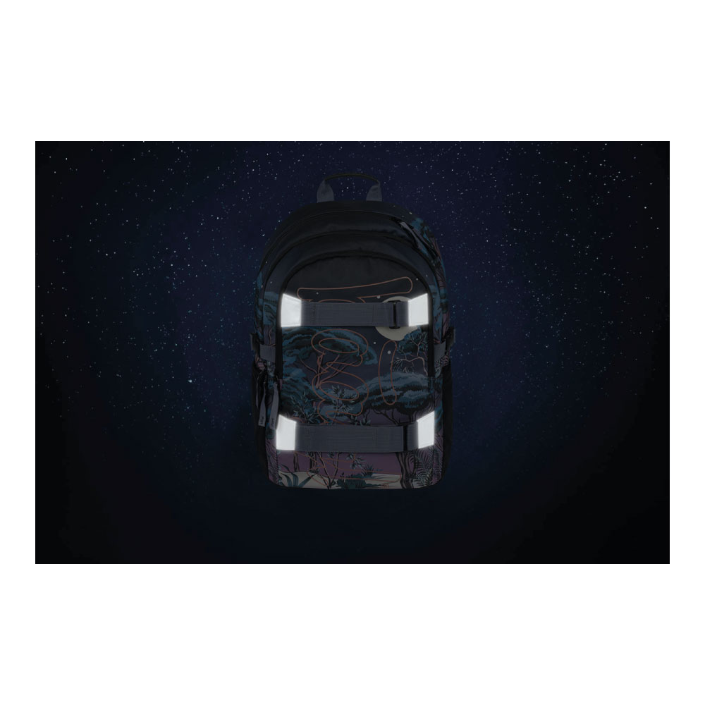 • Dívčí školní set složený z batohu Skate, kvalitního penálu a sáčku na obuv s motivem noční krajiny, vhodný od 3. třídy
