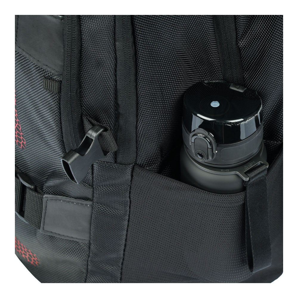 • Boční kapsy z elastického materiálu, které jsou vhodné pro jednu z našich láhví na pití.
