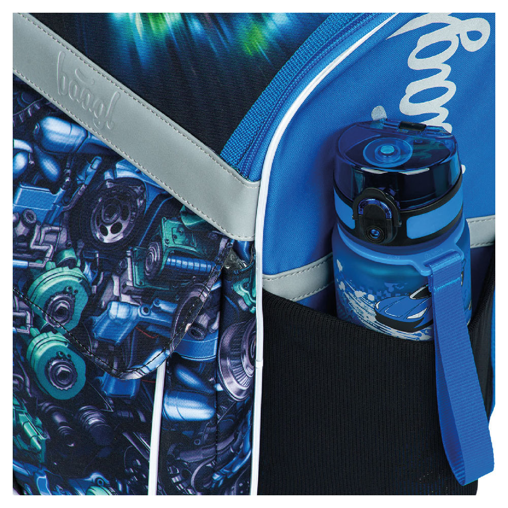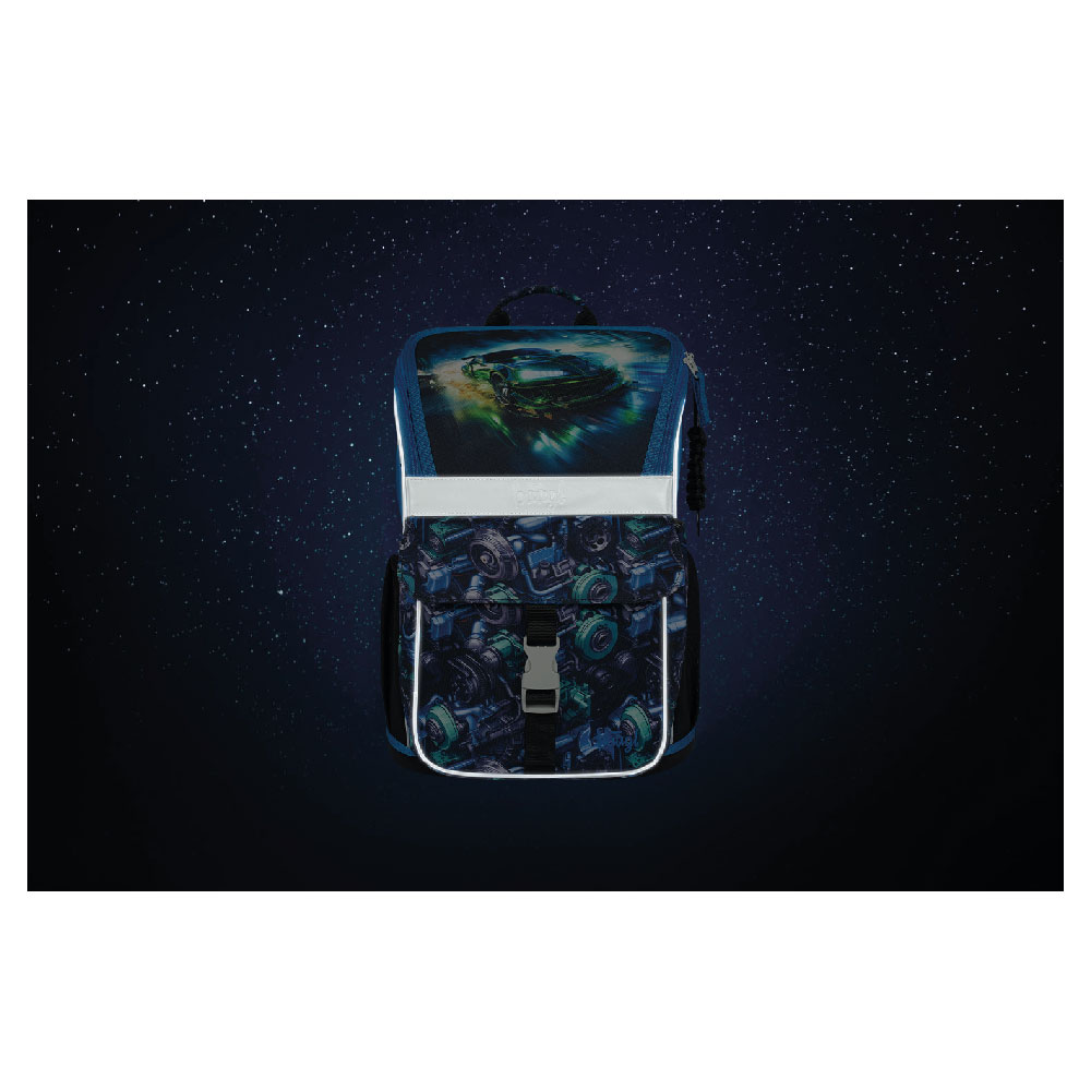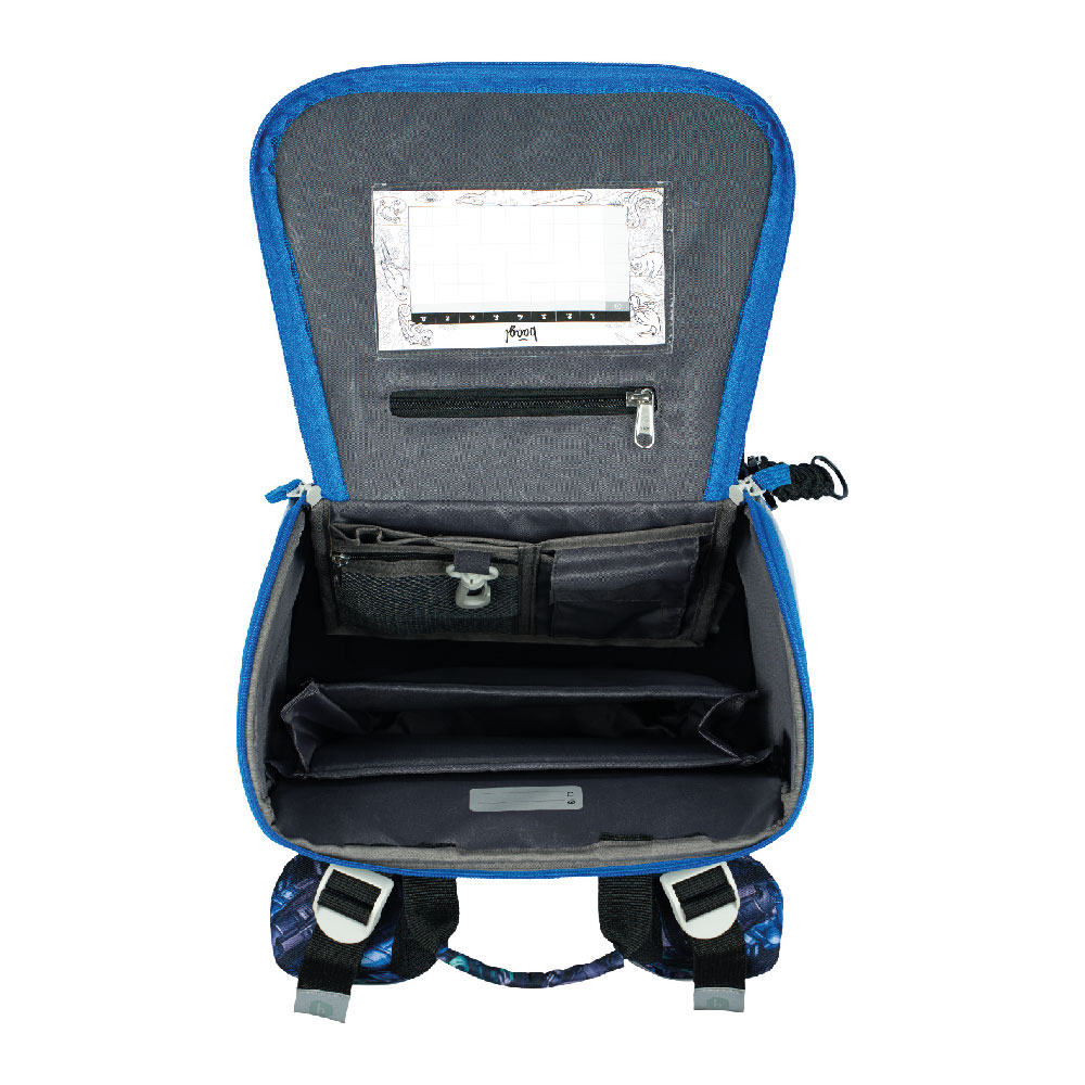 • Uvnitř aktovky je průhledná kapsa s rozvrhem a vnitřní organizér umožňující rovnoměrné rozložení hmotnosti, doplněný gumičkou pro fixaci.