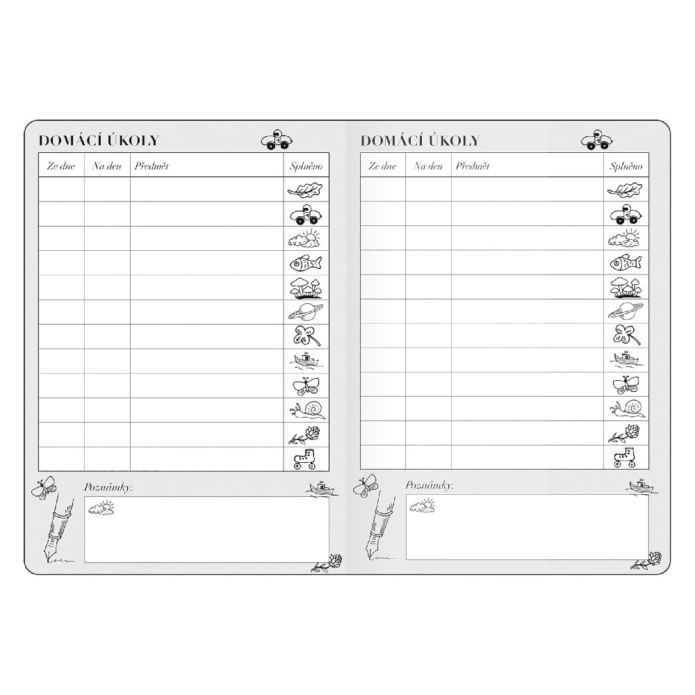 Školní zápisník pro zapsání poznámek a domácích úkolů.