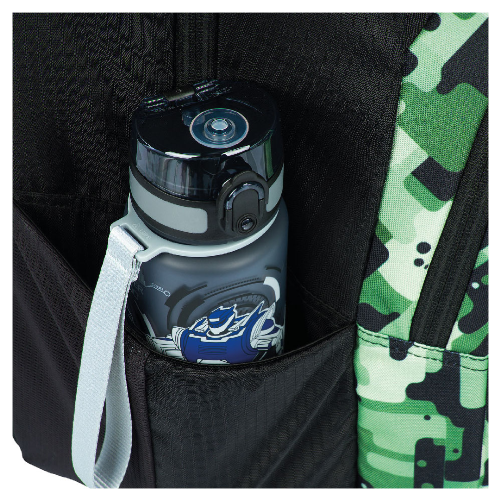 • Boční kapsy z elastického materiálu, které jsou vhodné pro jednu z našich láhví na pití.