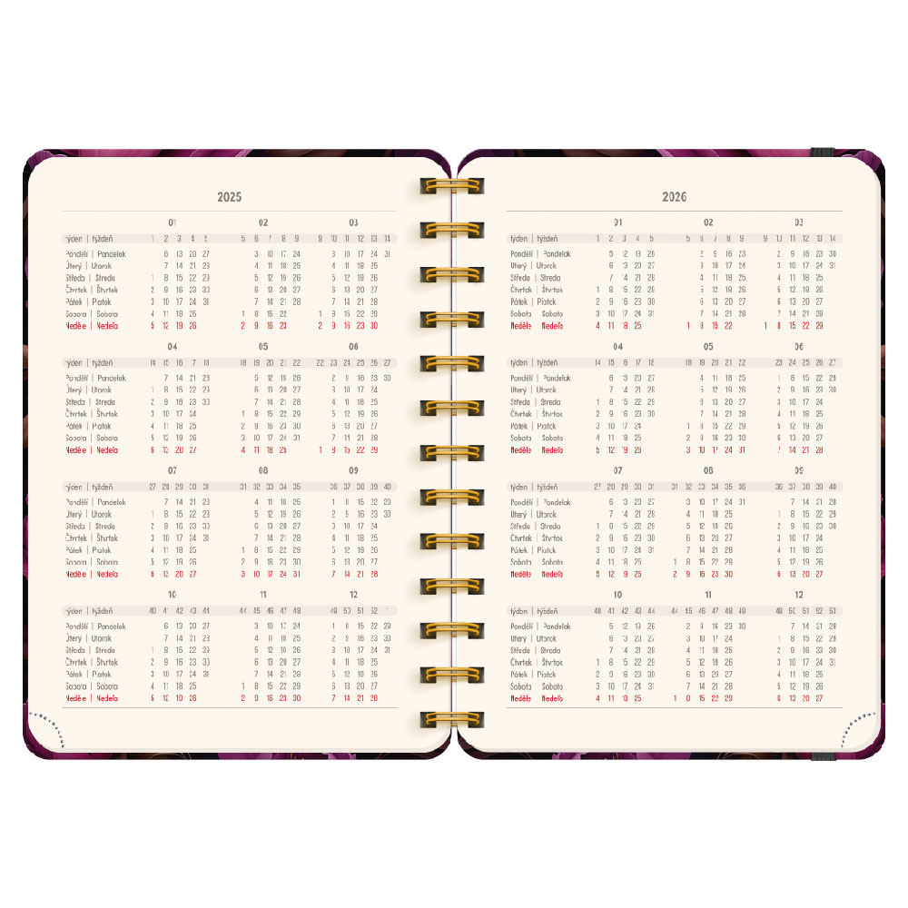 Spirálový 18měsíční diář Petito - Fialové květy 2025/2026
