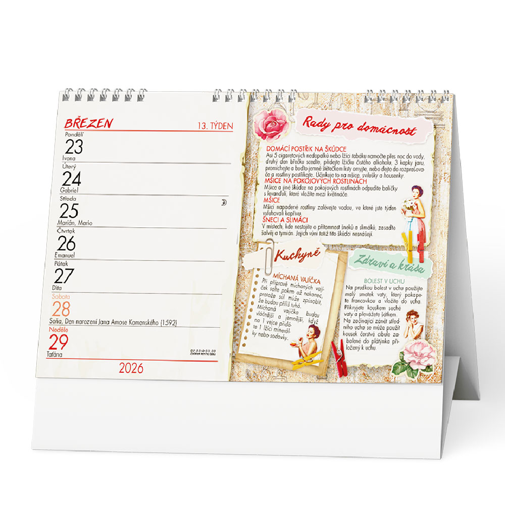 tabulkový kalendář aktuálního a následujícího roku, místo na poznámky