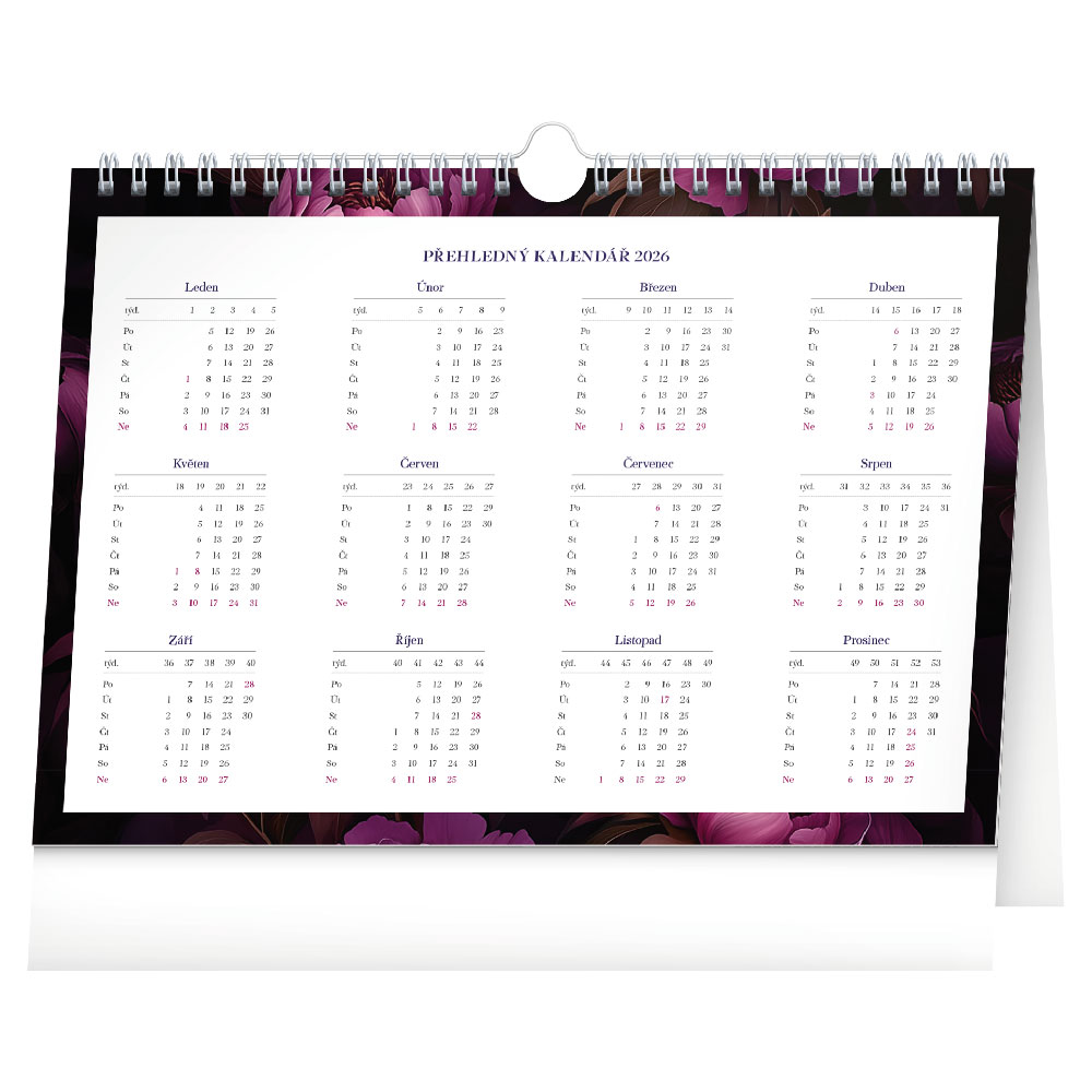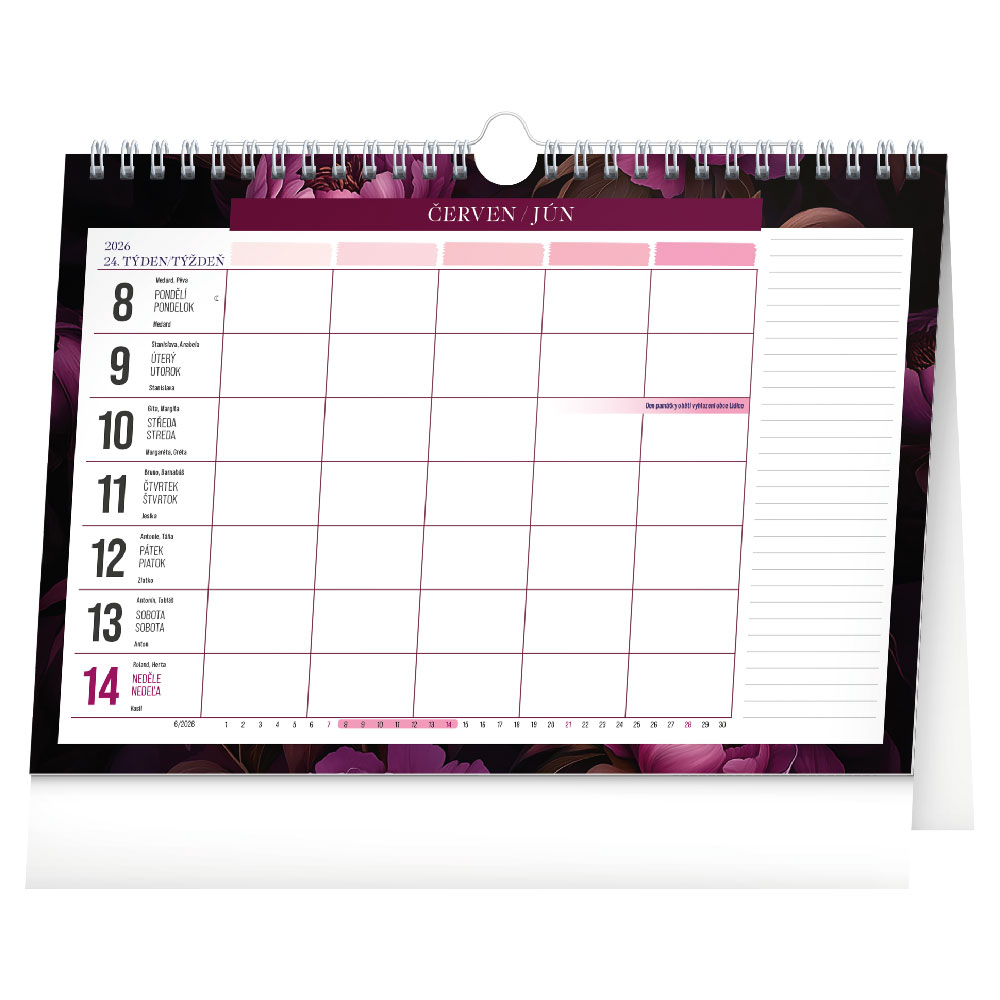 Stolní kalendář 2026 Fialové květy - Týdenní plánovací