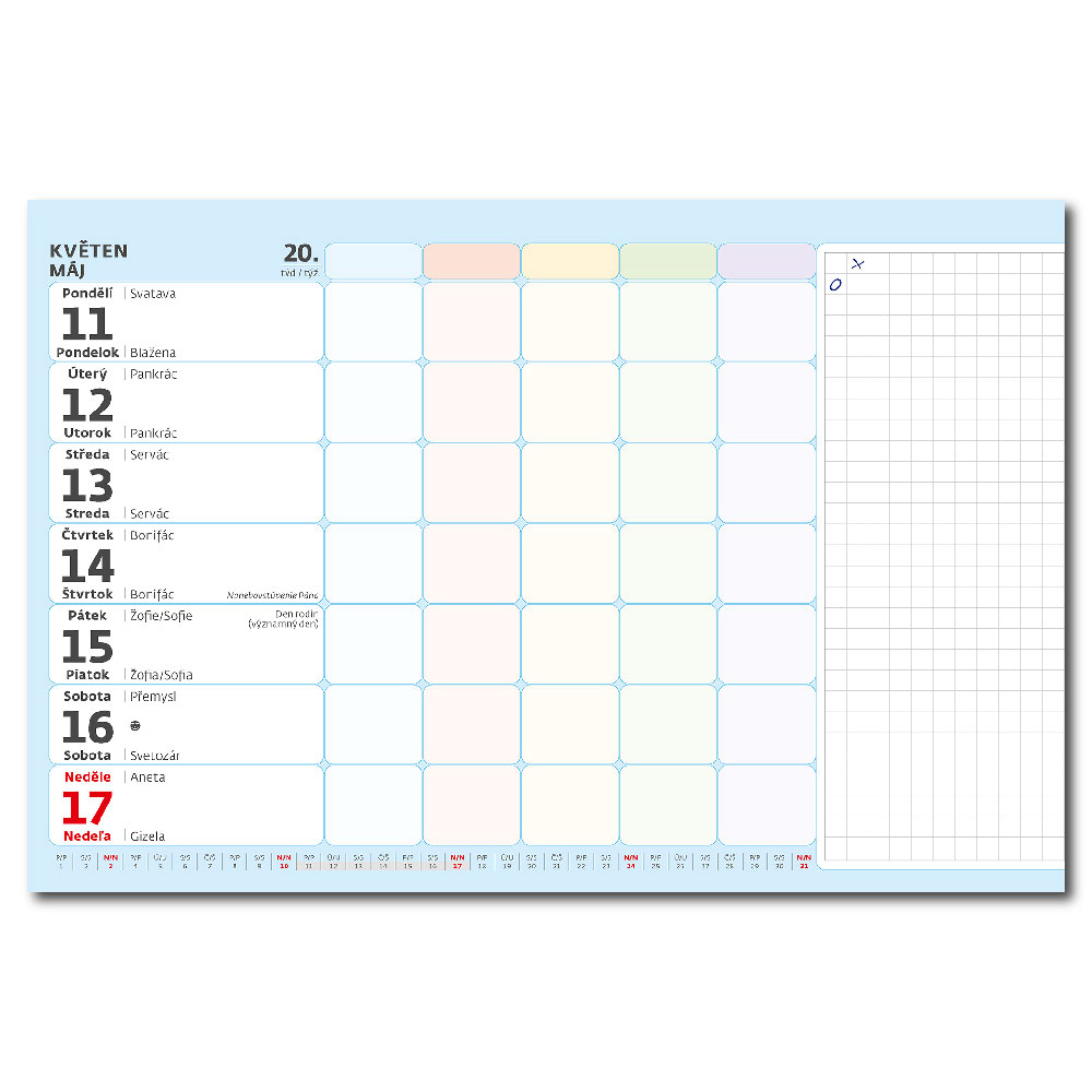 Kalendárium: České/slovenské týdenní řádkové jmenné