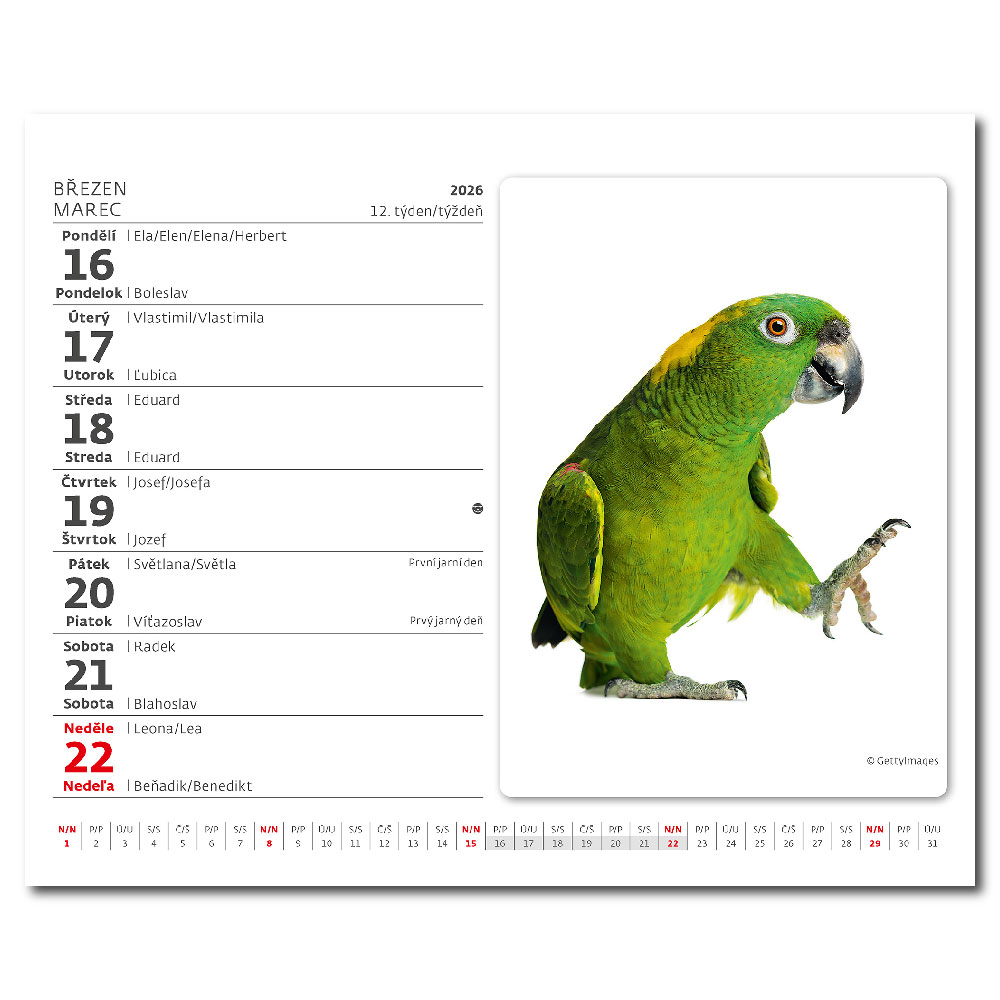 Kalendárium: České/slovenské týdenní řádkové jmenné