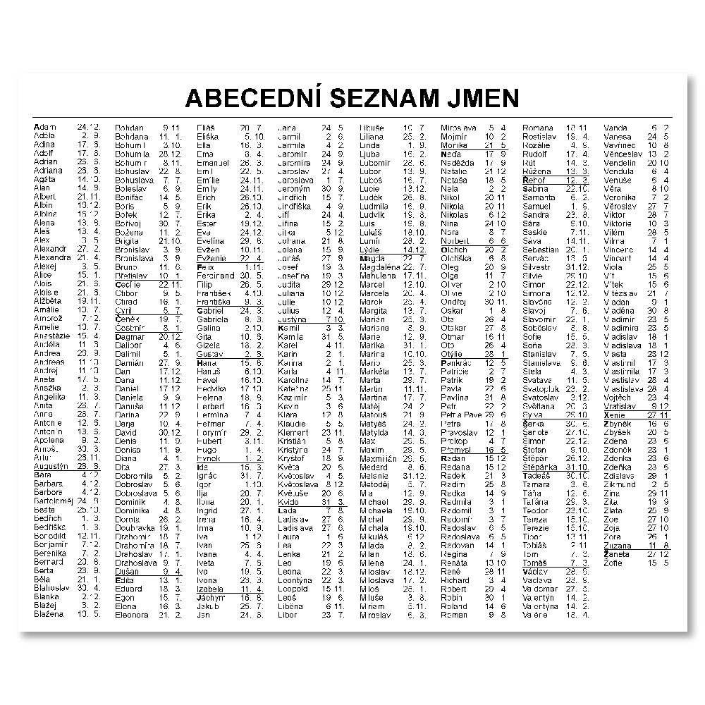 Obsahuje plánovací kalendář a abecední seznam jmen.