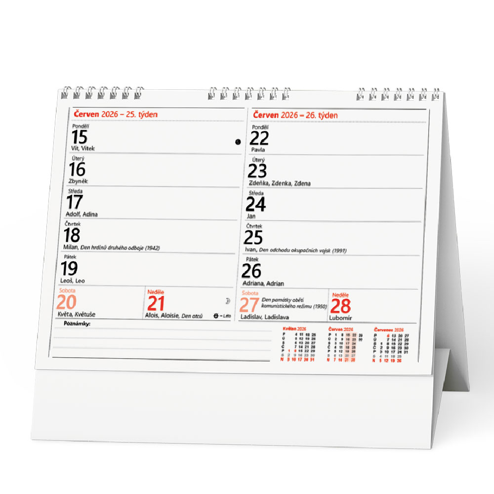 Stolní kalendář 2026 Pracovní kalendář Čtrnáctidenní