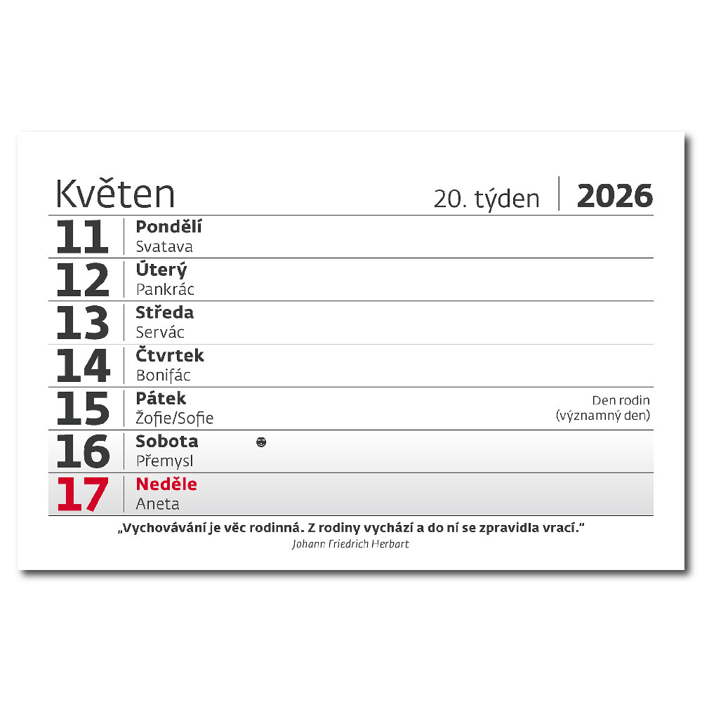 Stolní kalendář 2026 - Týdenní "S" s citáty