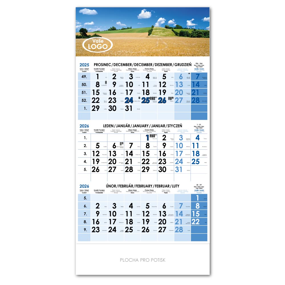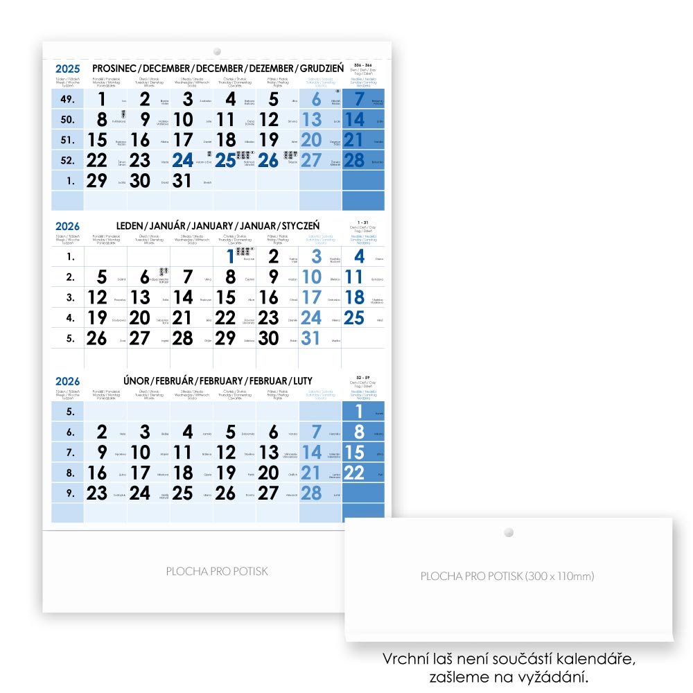 Tříměsíční kalendář Trio český 2026 - modrý