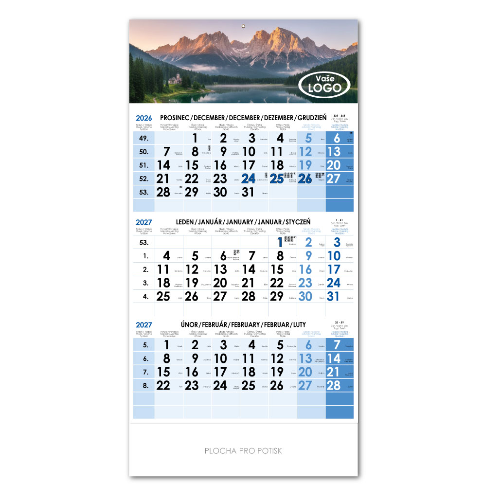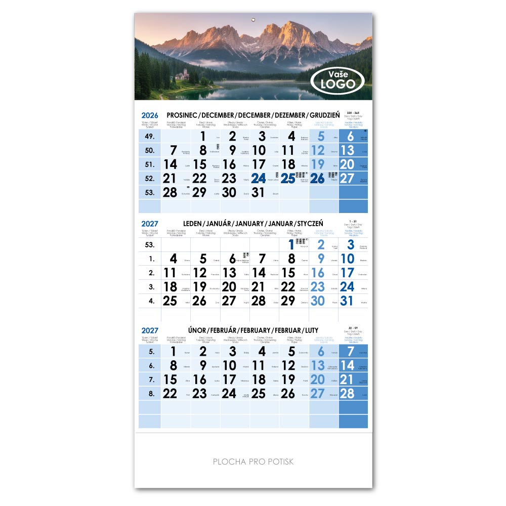 Tříměsíční kalendář Trio český 2027 - modrý