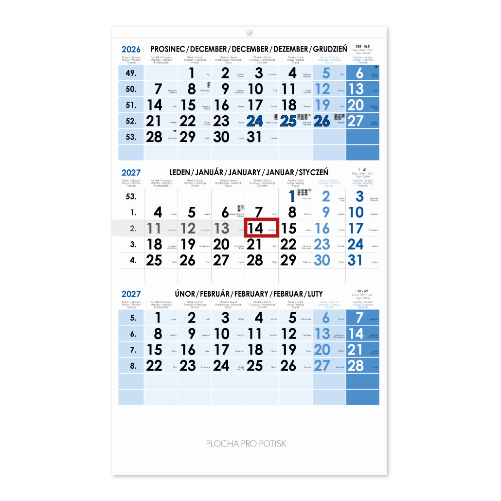 Kalendárium: tříměsíční české jmenné s jazykovu mutací SK, ANG, D