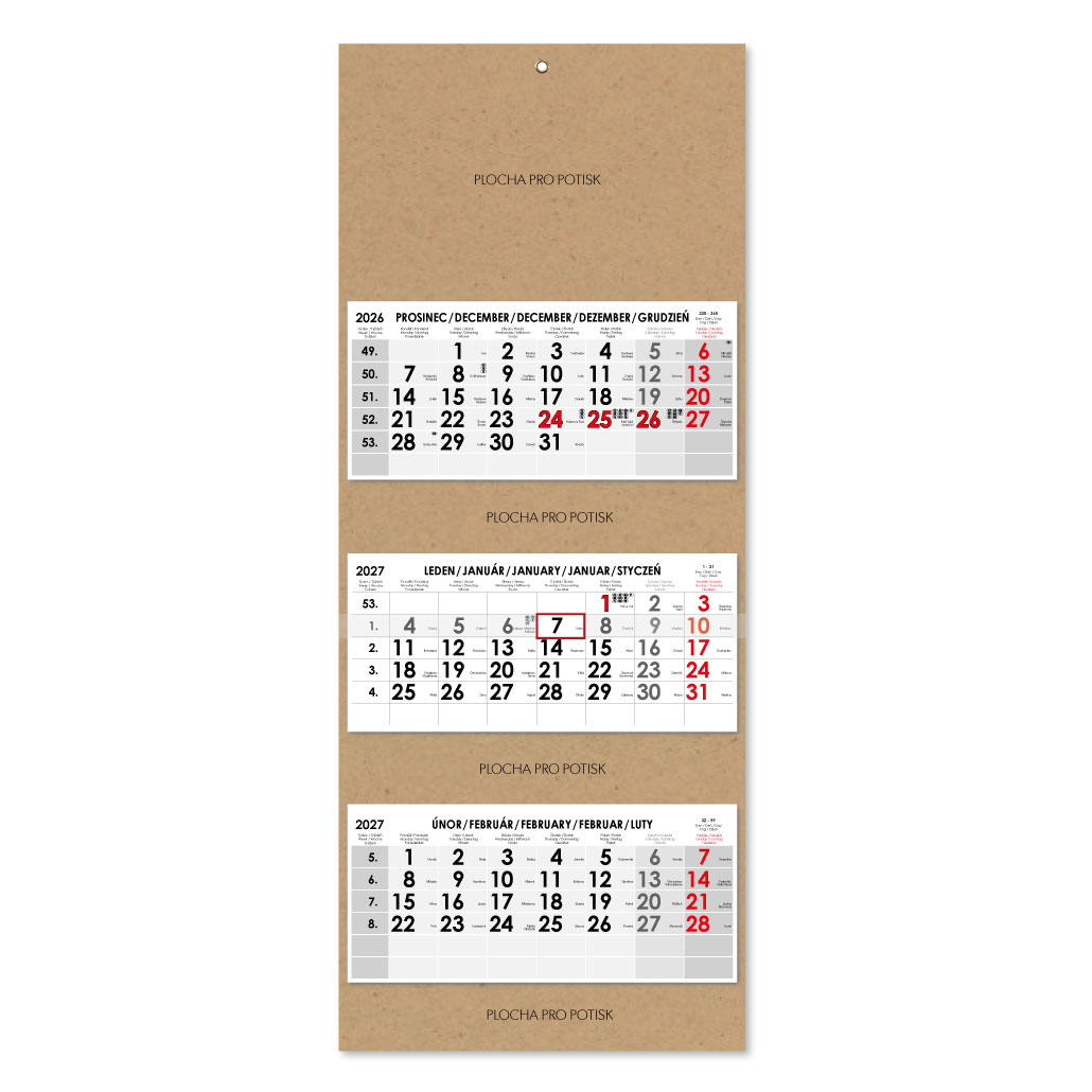 Tříměsíční kalendář Trio Kraft skládaný český 2027 - šedý