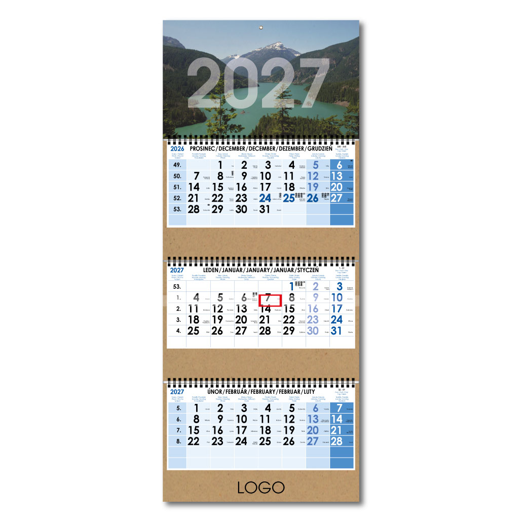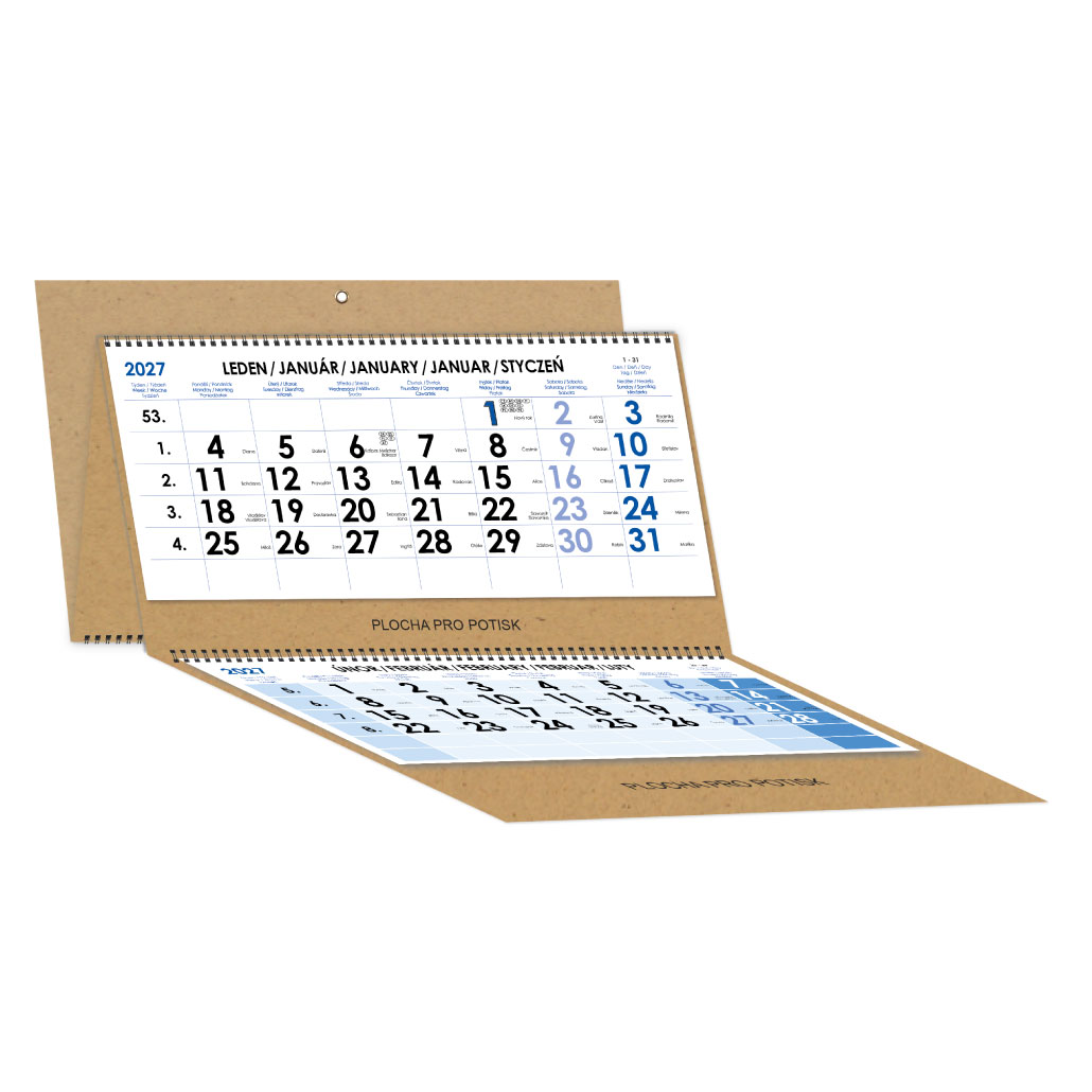 Tříměsíční kalendář Trio Kraft skládaný český se spirálou 2027 - modrý