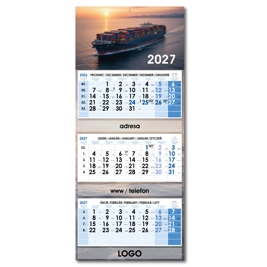 Formát kalendária: 295 x 135 mm