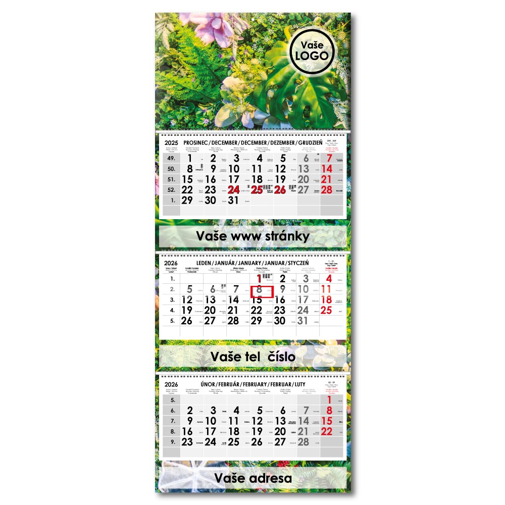 Tříměsíční kalendář Trio skládaný český se spirálou 2026 - šedý