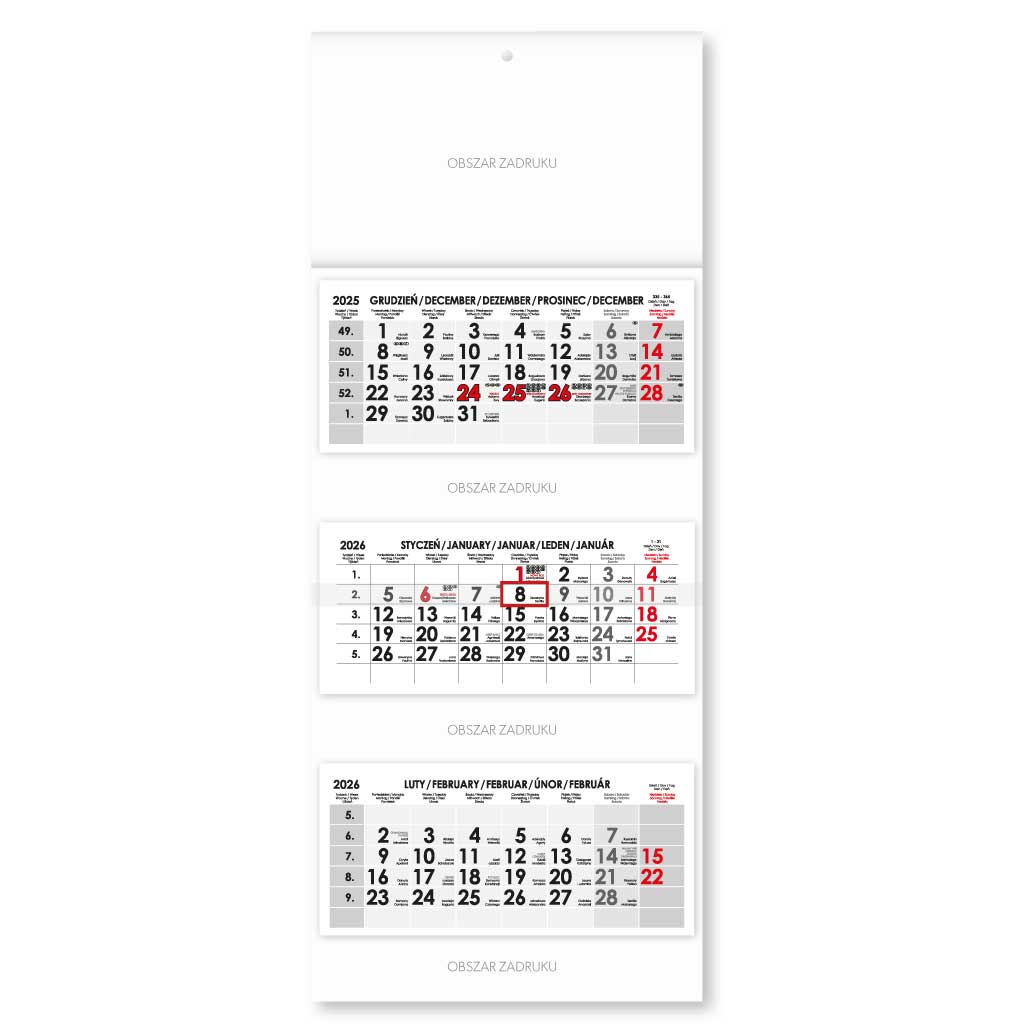 Tříměsíční kalendář Trio skládaný polský 2026 - šedý