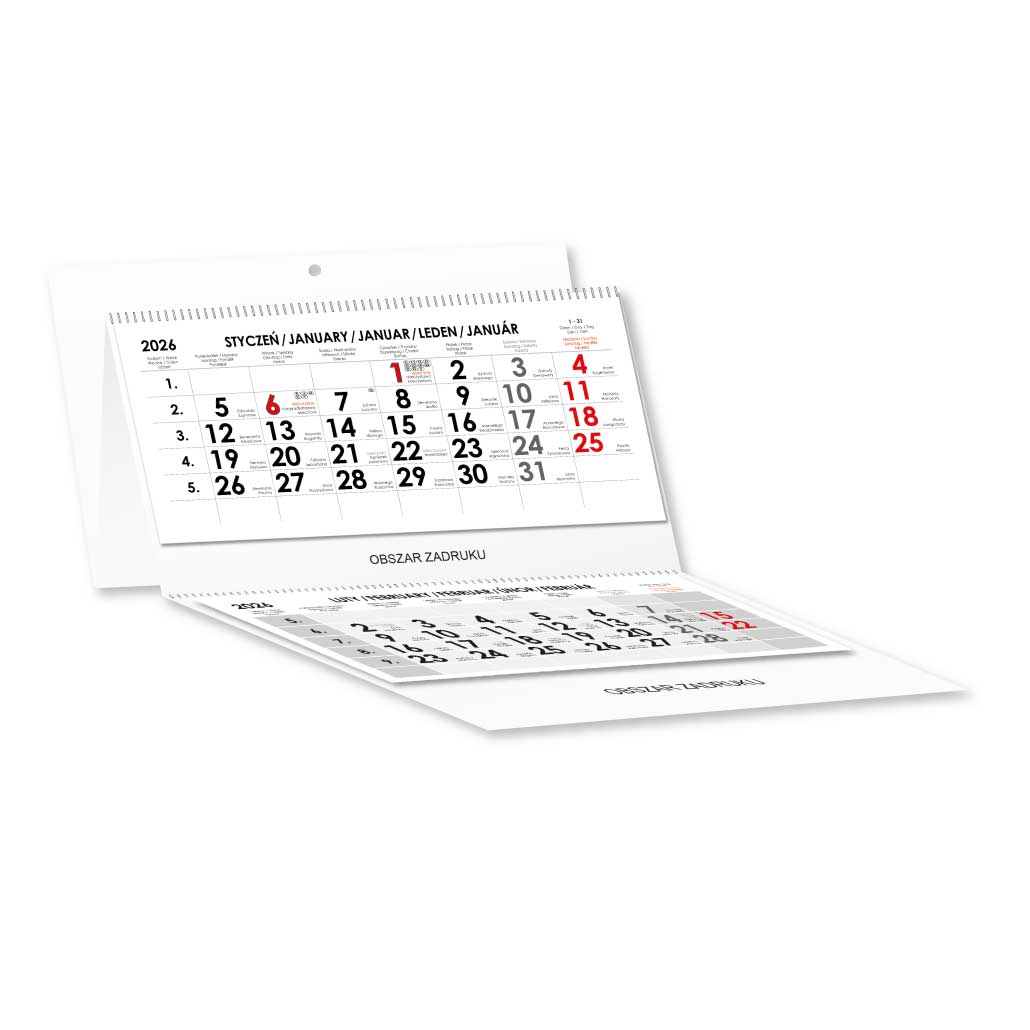 Tříměsíční kalendář Trio skládaný polský se spirálou 2026 - šedý