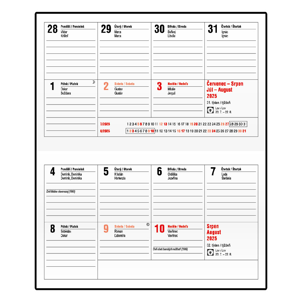 čtvrtletní plánovací kalendář CZ/SK 2025,