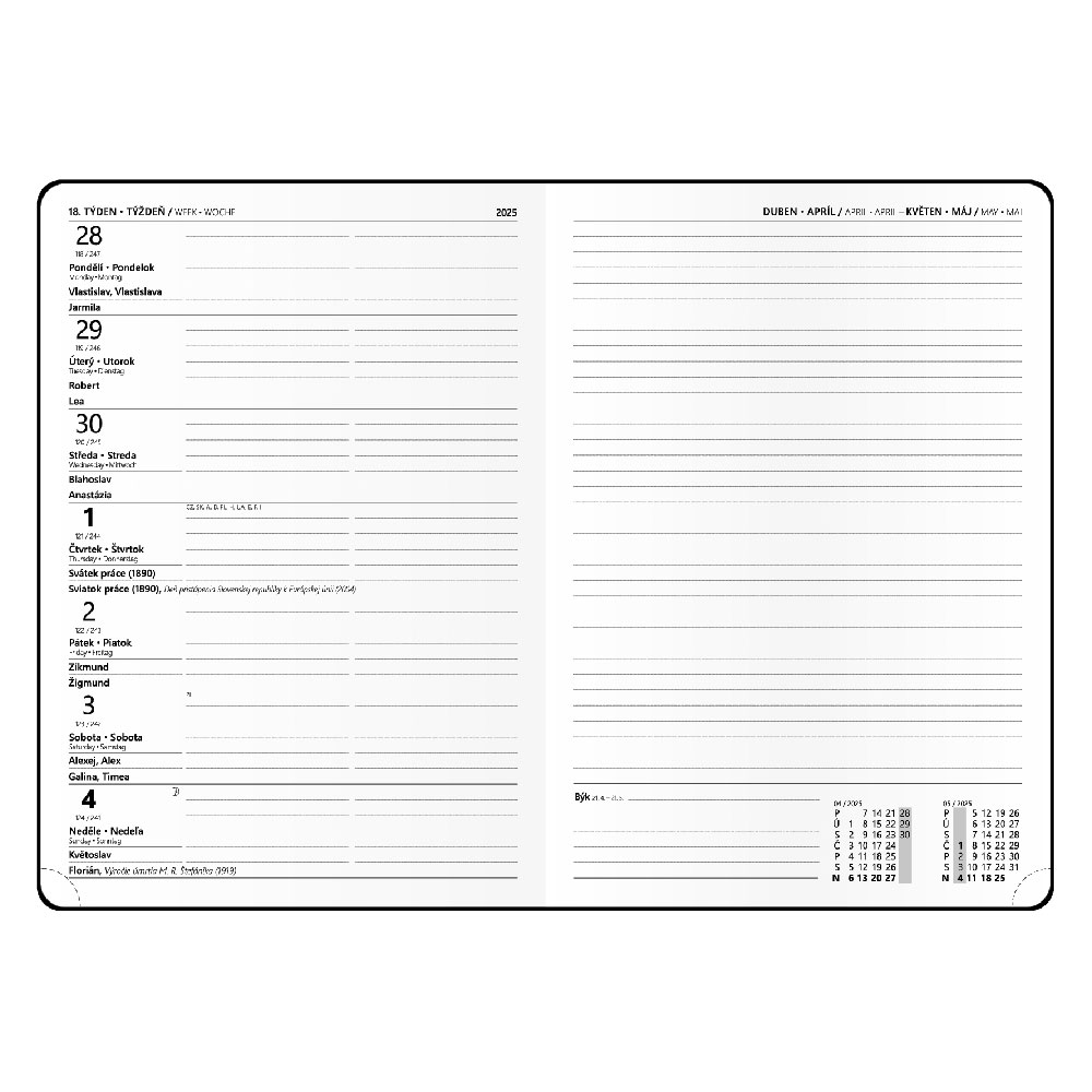 Týdenní diář 2025 Zoro Tora A5 - černá