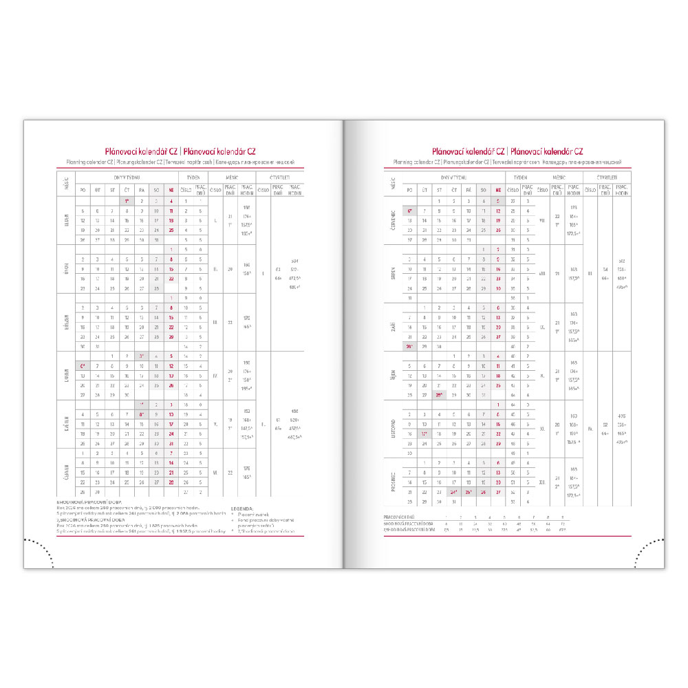 roční plánování 2026 a 2027, pracovní plánovací kalendář, mapa ČR a SK,