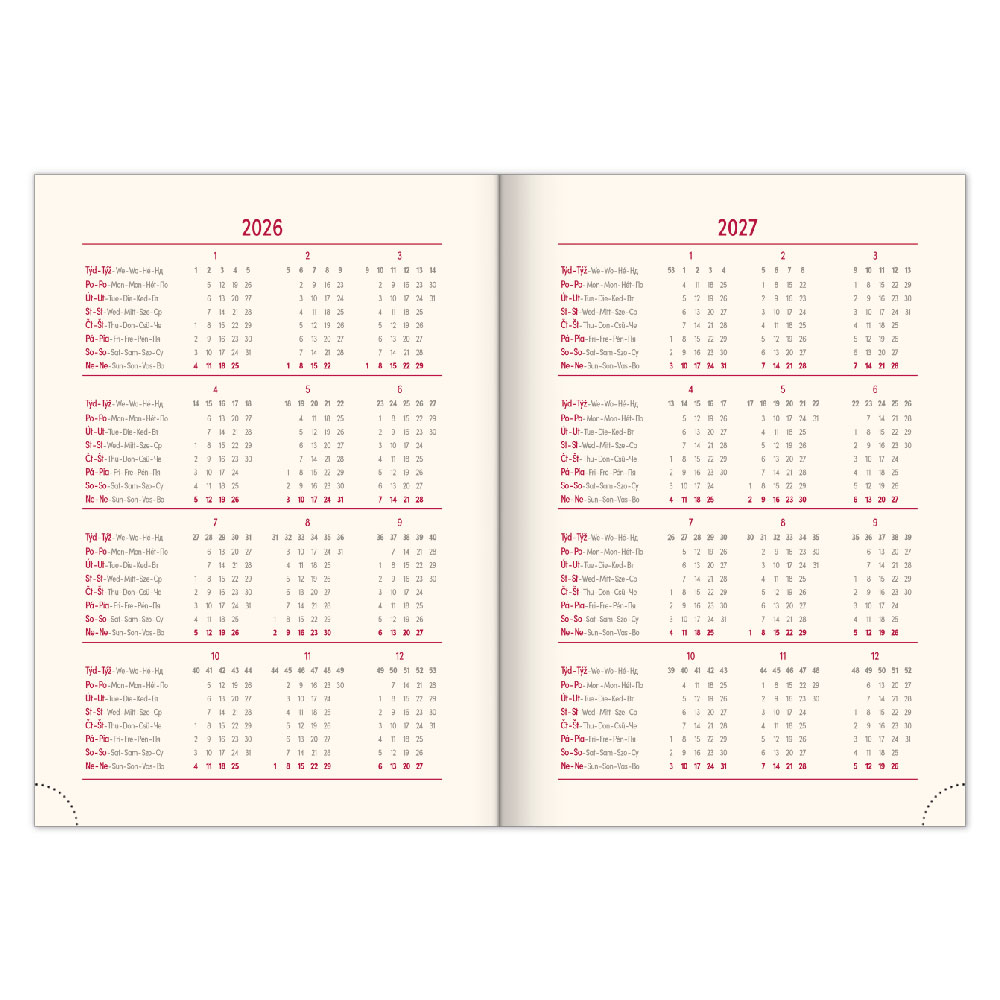 Kalendárium: 6jazyčné týdenní (CZ, SK, EN, DE, HU, RU)