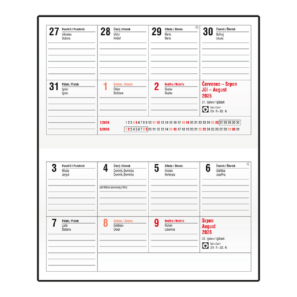 čtvrtletní plánovací kalendář CZ/SK 2026,