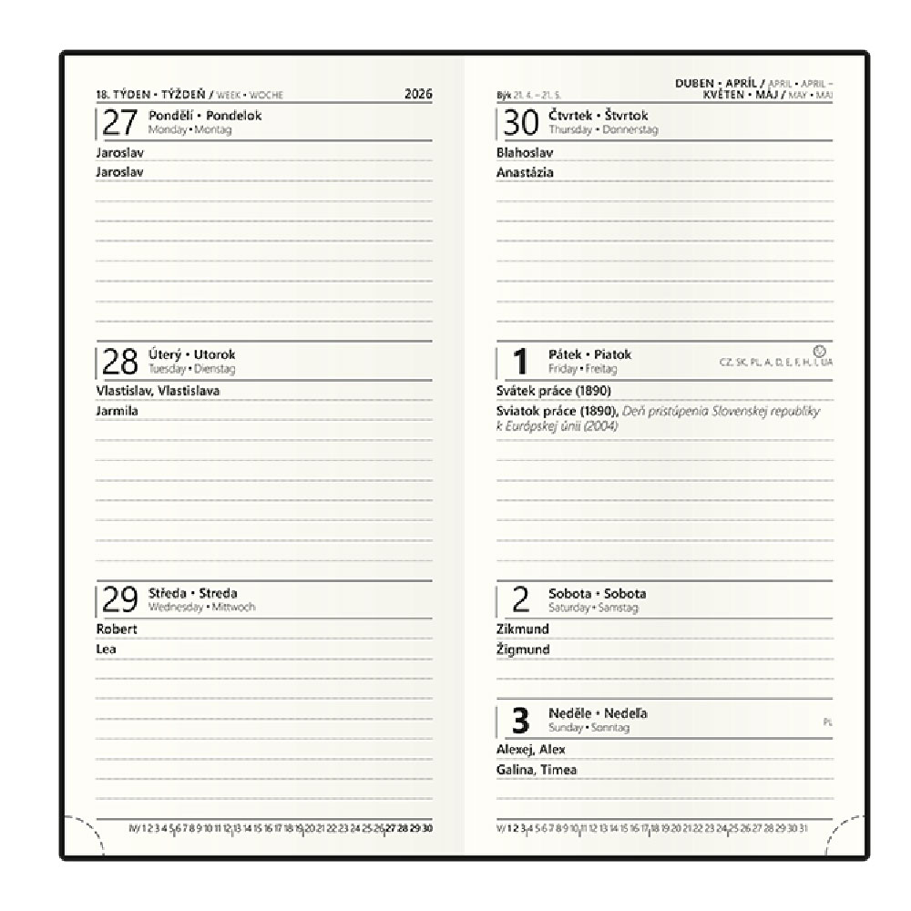 Kalendárium: týdenní české a slovenské jmenné