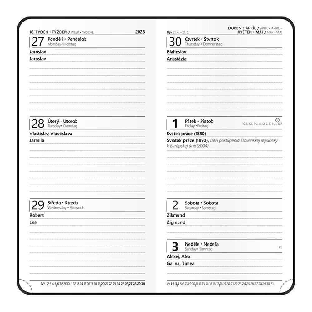 Kalendárium: týdenní české a slovenské jmenné