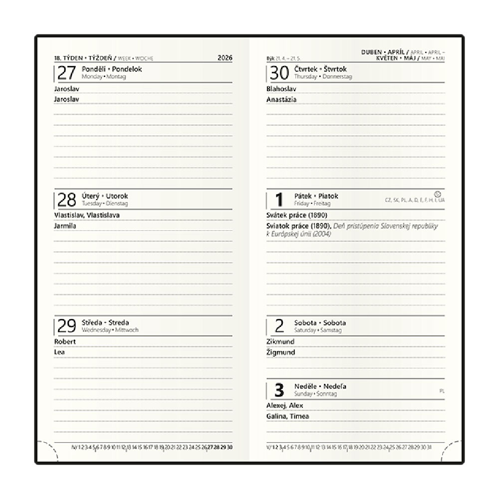 Kalendárium: týdenní české a slovenské jmenné