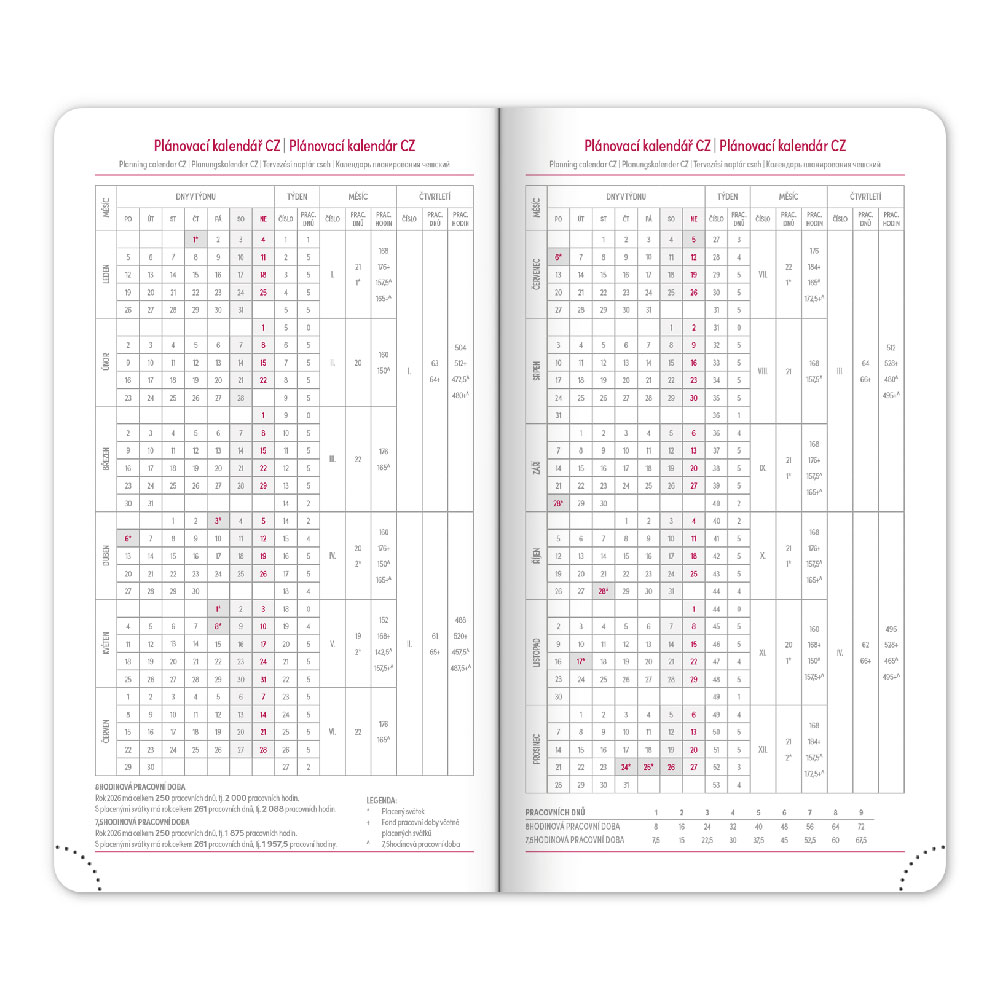 roční plánování 2026 a 2027, pracovní plánovací kalendář,