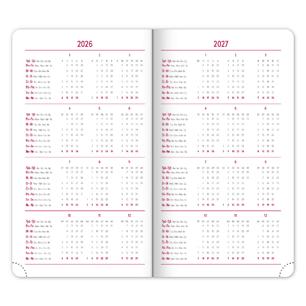 Kalendárium: 6jazyčné týdenní (CZ, SK, EN, DE, HU, RU)