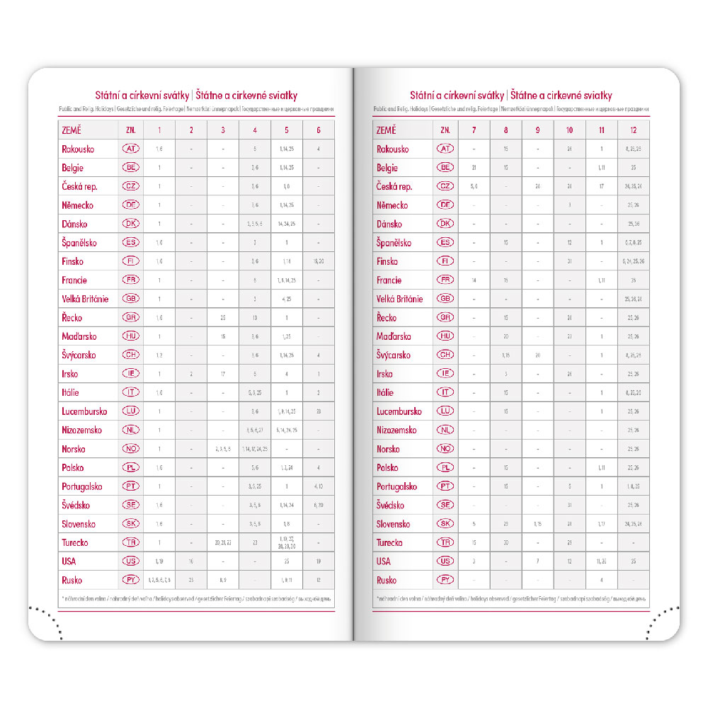 Kalendárium: 6jazyčné týdenní (CZ, SK, EN, DE, HU, RU)
