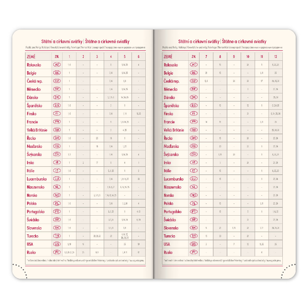 Kalendárium: 6jazyčné týdenní (CZ, SK, EN, DE, HU, RU)