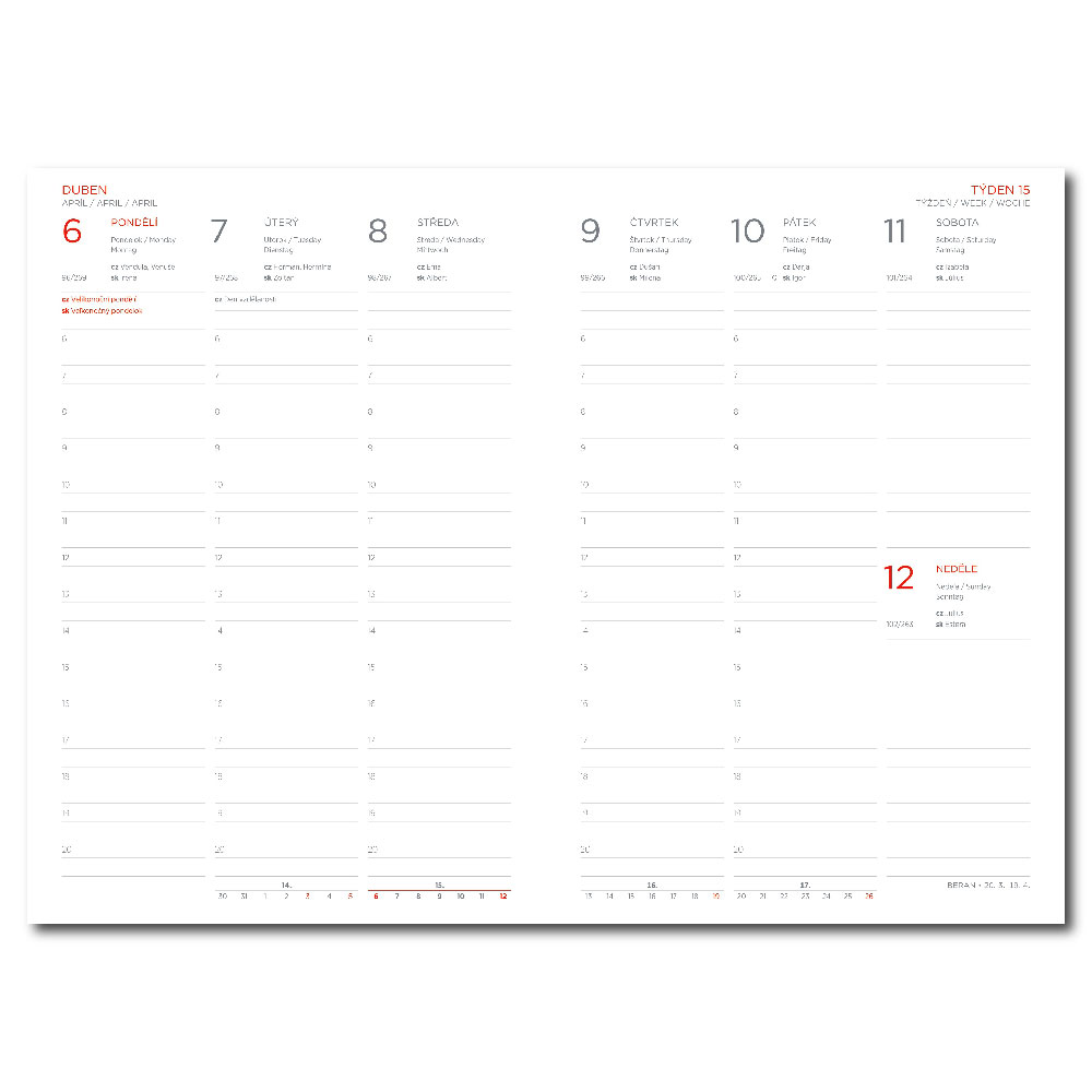 Součástí diáře je papírová kapsa, poutko na zavírání