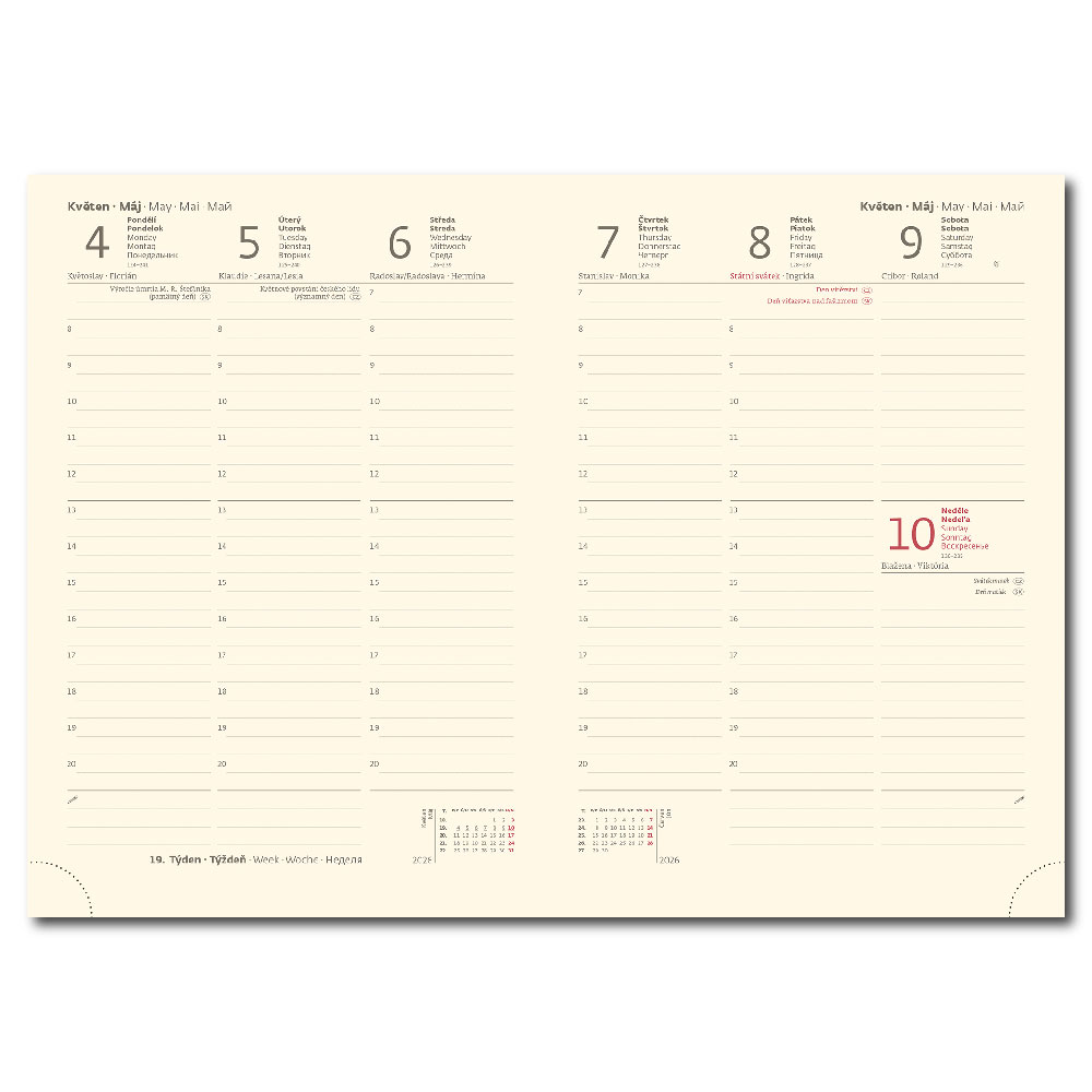 mezinárodní svátky, roční výhled, týdenní layout, adresář,