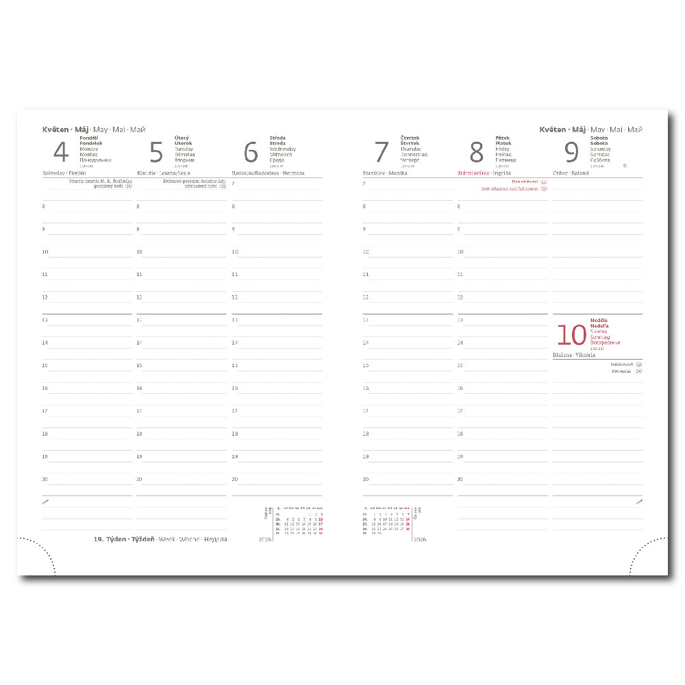 mezinárodní svátky, roční výhled, týdenní layout, adresář,