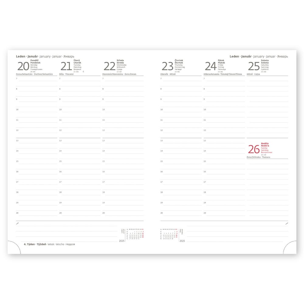 mezinárodní svátky, roční výhled, týdenní layout, adresář,