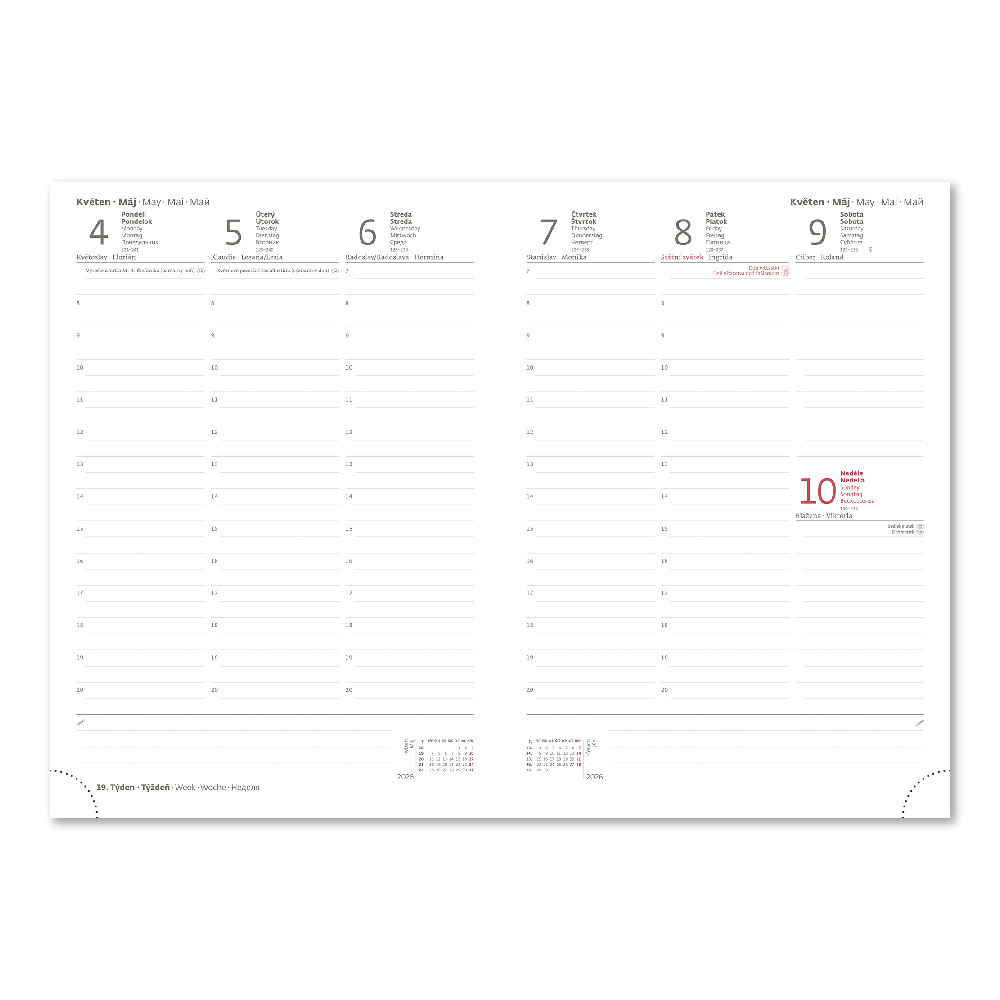 mezinárodní svátky, roční výhled, týdenní layout, adresář,