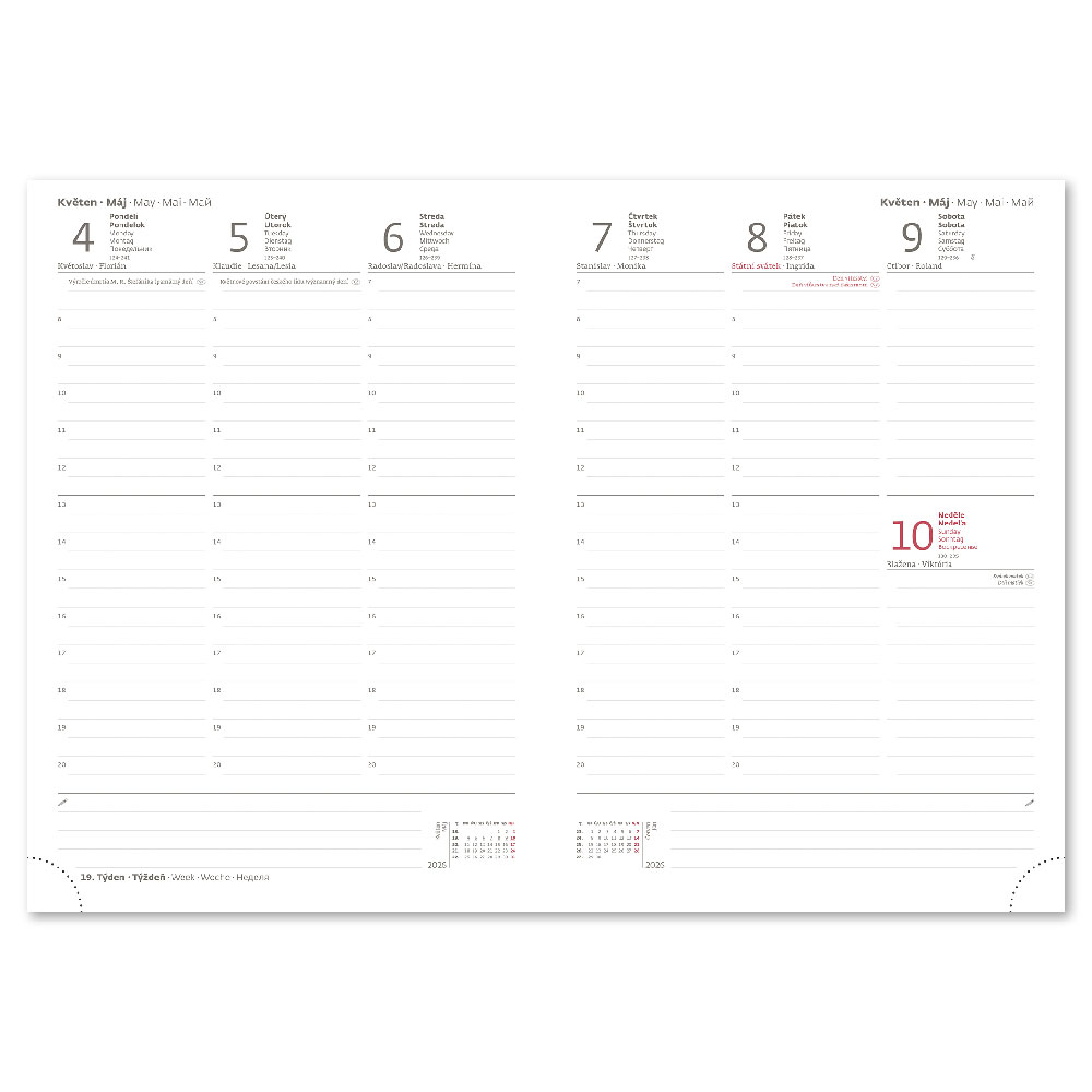 mezinárodní svátky, roční výhled, týdenní layout, adresář,