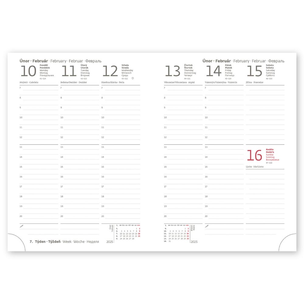 mezinárodní svátky, roční výhled, týdenní layout, adresář,