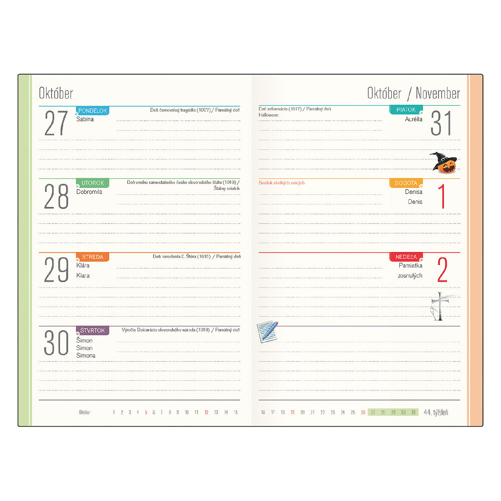 Obsahuje: rozvrh hodin, adresář, přehled prázdnin, poznámky,