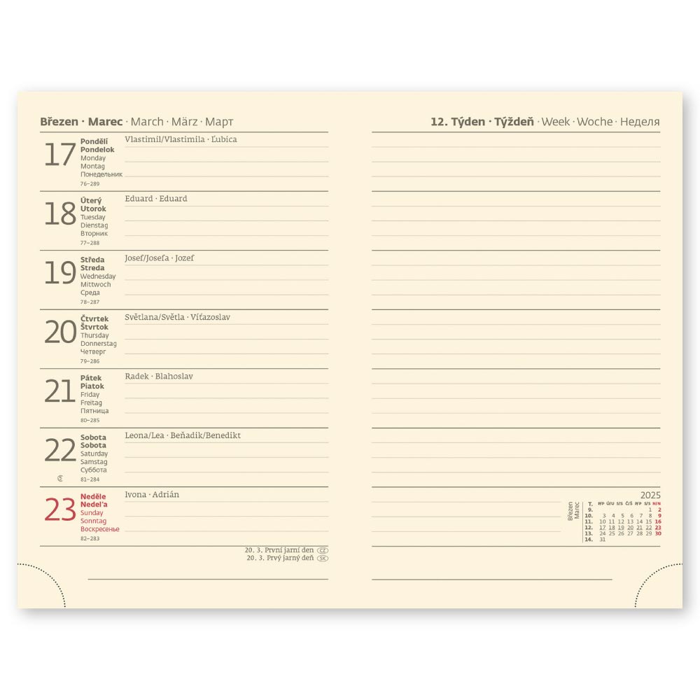 mezinárodní svátky, roční výhled, týdenní layout, adresář,