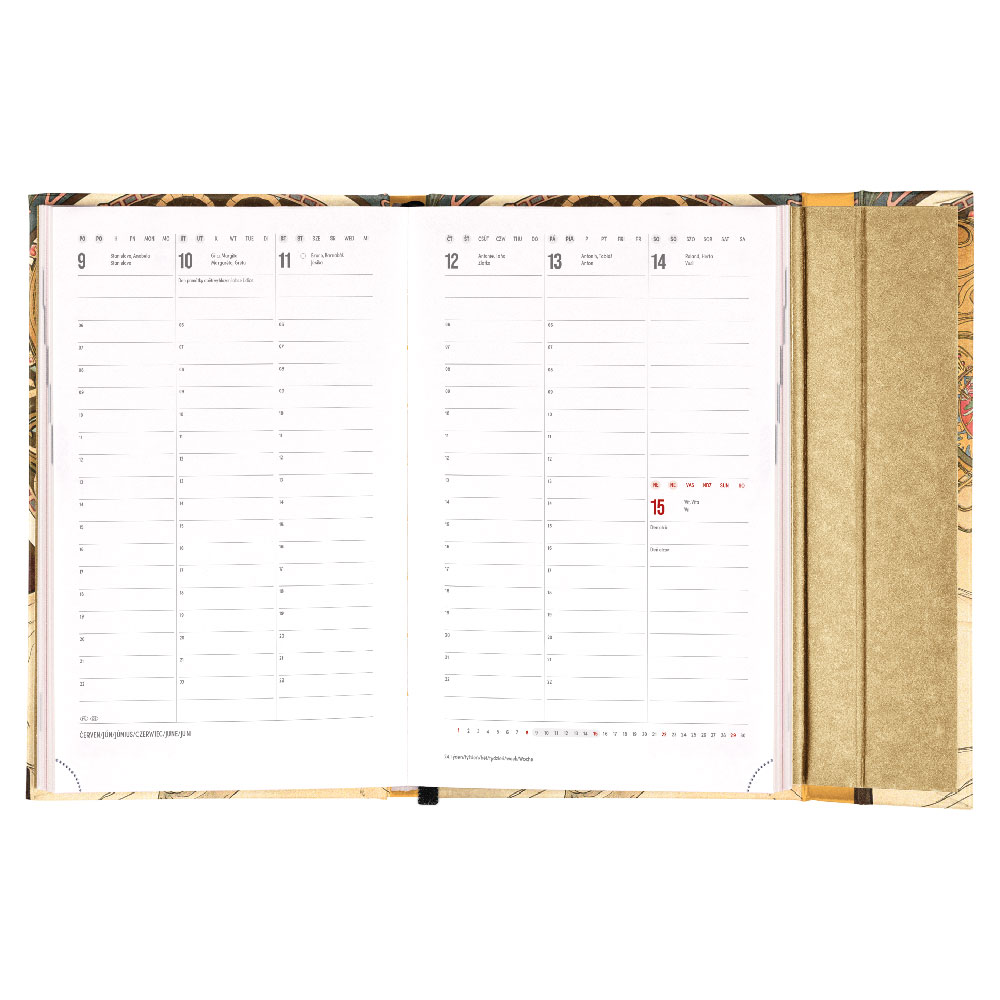 Součástí je záložka, poutko na tužku a vnitřní kapsa na navštívenky.