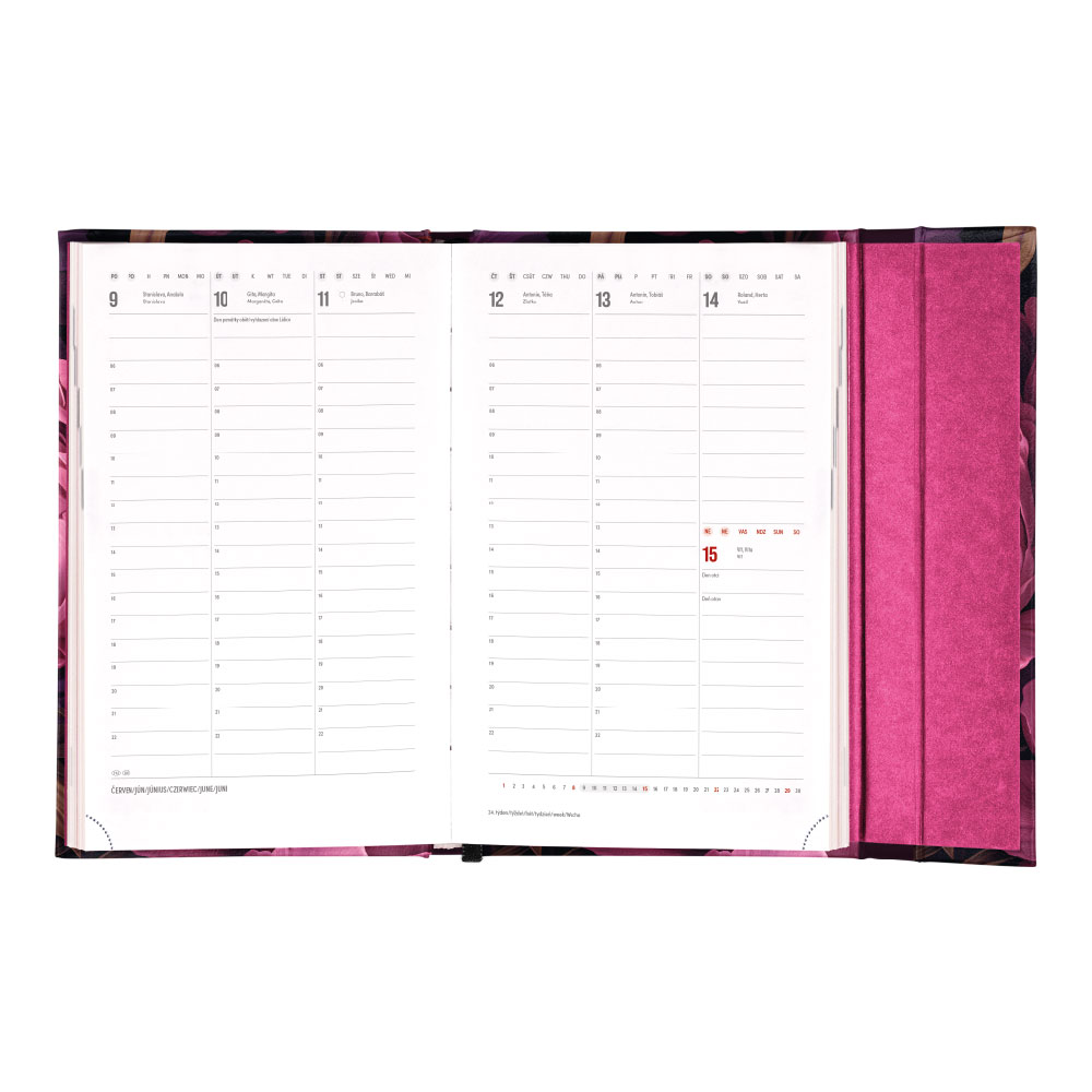 Týdenní magnetický diář 2025 A5 Fialová květy