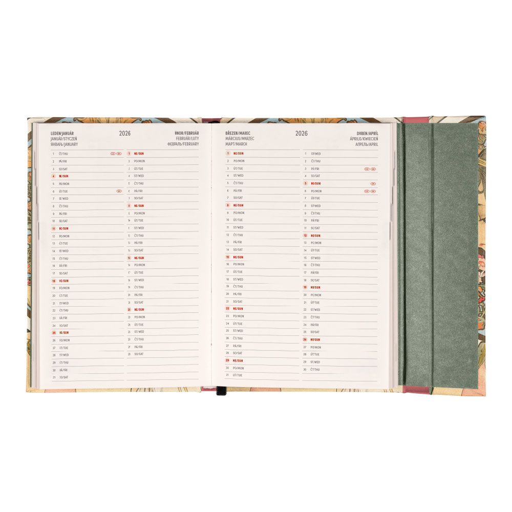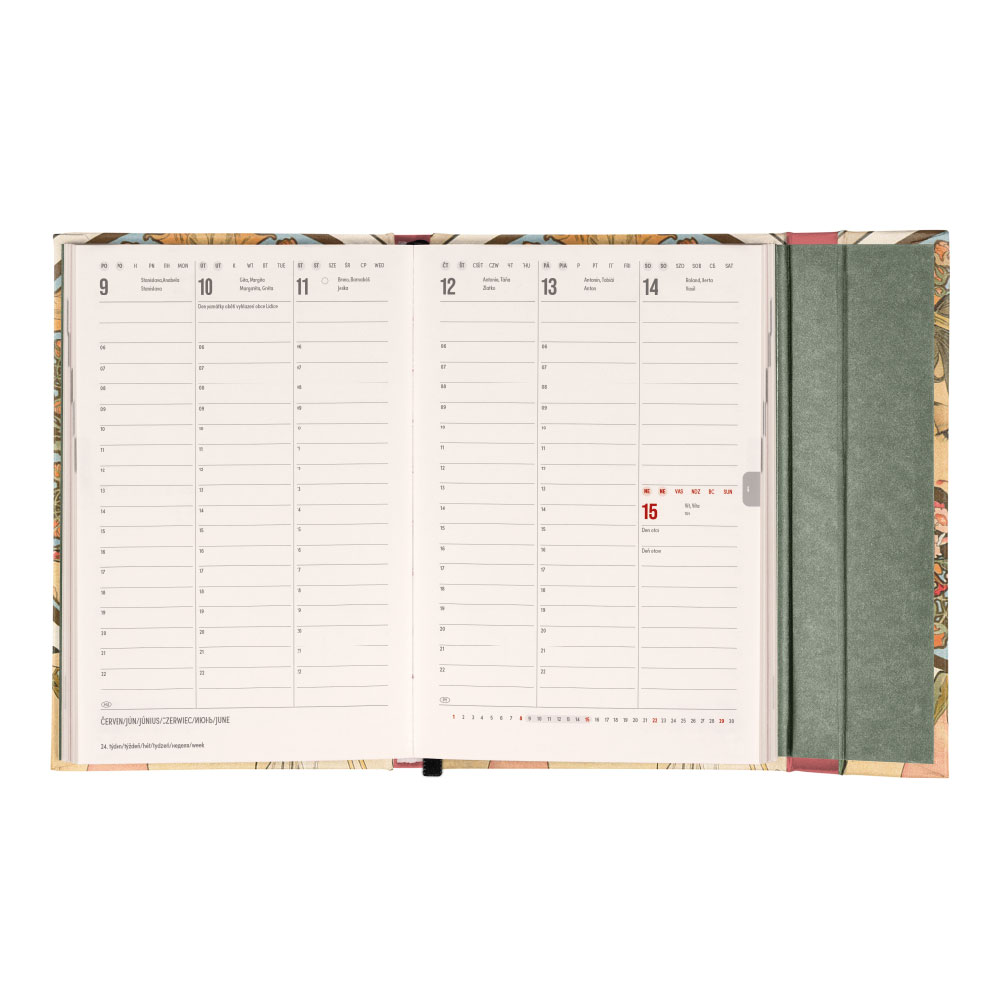 Týdenní magnetický diář 2025 B6 Alfons Mucha