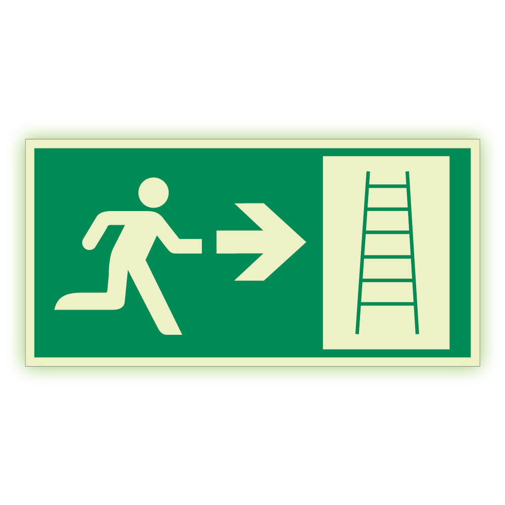 Únikový rebrík vpravo - fotoluminiscenčná tabuľka, plast 2 mm 200x100 mm