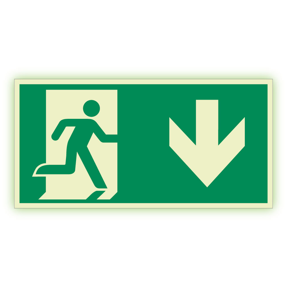 Únikový východ dole - fotoluminiscenčná tabuľka, plast 2 mm 200x100 mm